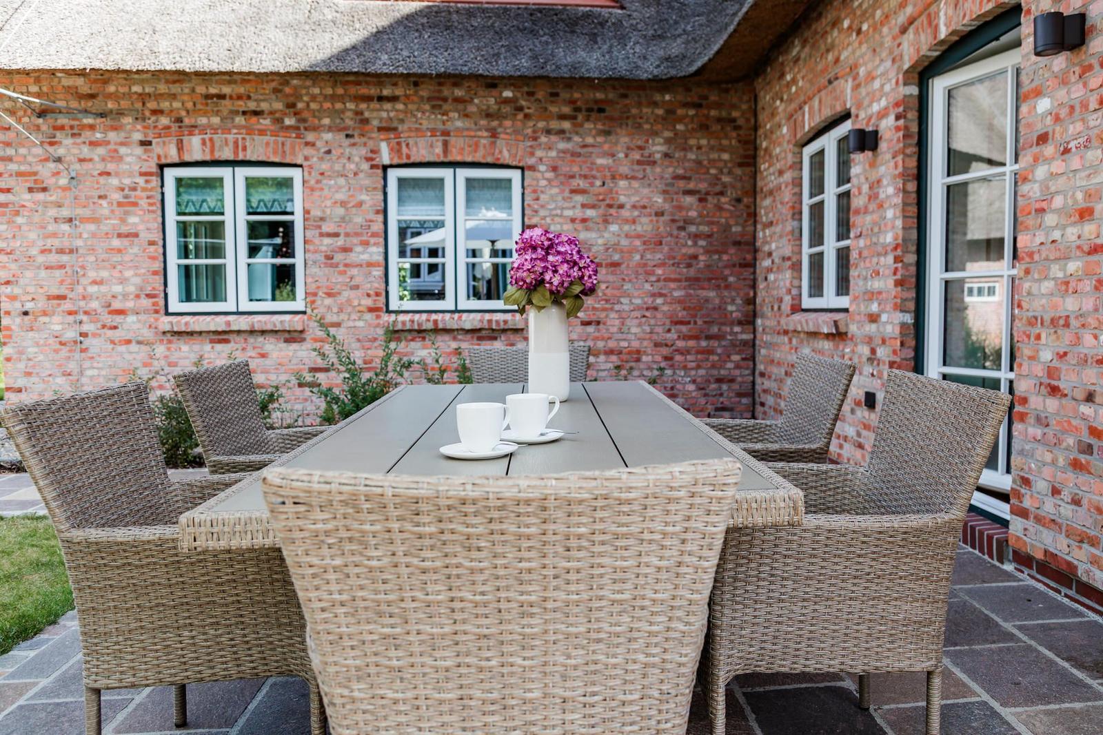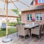 Die Ferienwohnung bietet großzügigen Platz und moderne Ausstattung für einen erholsamen Aufenthalt. Mit drei Schlafzimmern, darunter zwei Doppelbetten und zwei Einzelbetten, finden Gäste ausreichend Rückzugsmöglichkeiten. Die offene Küche ist optimal ausgestattet mit einem Elektro-/Gasherd, Geschirrspüler, Backofen, Mikrowelle, Kühlschrank und einer Kaffeemaschine, um kulinarische Köstlichkeiten zuzubereiten. Ein Esstisch bietet Platz für gesellige Mahlzeiten.