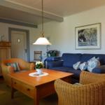 Die moderne Ferienwohnung bietet eine großzügige Aufteilung mit drei Schlafzimmern, in denen sich zwei Doppelbetten und zwei Einzelbetten befinden. Zwei Badezimmer, jeweils mit Fenster, sorgen für zusätzlichen Komfort. Die separate Küche ist vollständig ausgestattet und umfasst einen Geschirrspüler, Elektro-/Gasherd, Backofen, Mikrowelle, Kühlschrank mit Gefriermöglichkeit sowie eine Kaffeemaschine und Toaster. Ein Esstisch lädt zu gemeinsamen Mahlzeiten ein. Das Wohnzimmer überzeugt mit einem Sofa, Sessel und einem TV, ideal zum Entspannen. Die Wohnung ist allergikergeeignet und mit WLAN ausgestattet, um auch während des Urlaubs online zu bleiben. Eine Waschmaschine sowie Reinigungsmittel im Starterset sind ebenfalls vorhanden. Der Raum ist mit Heizung ausgestattet und bietet ausreichend Stauraum durch Schrank und Kommode. Zudem stehen ein Raclette-Grill und ein Sonnenschirm für eine entspannte Zeit im Freien bereit.
