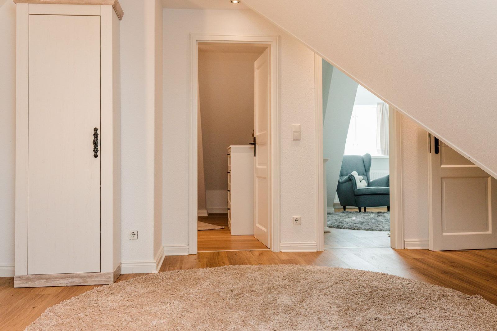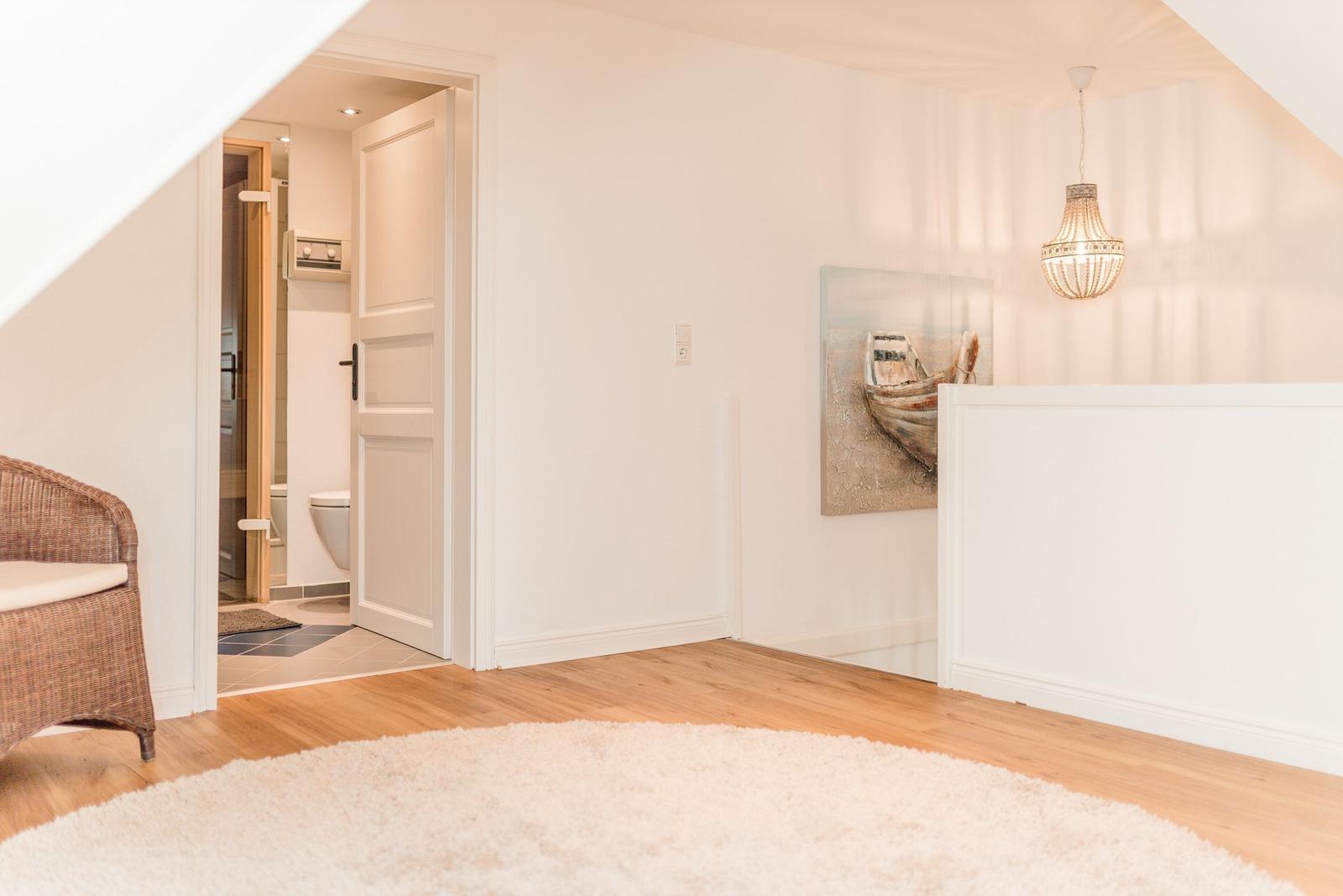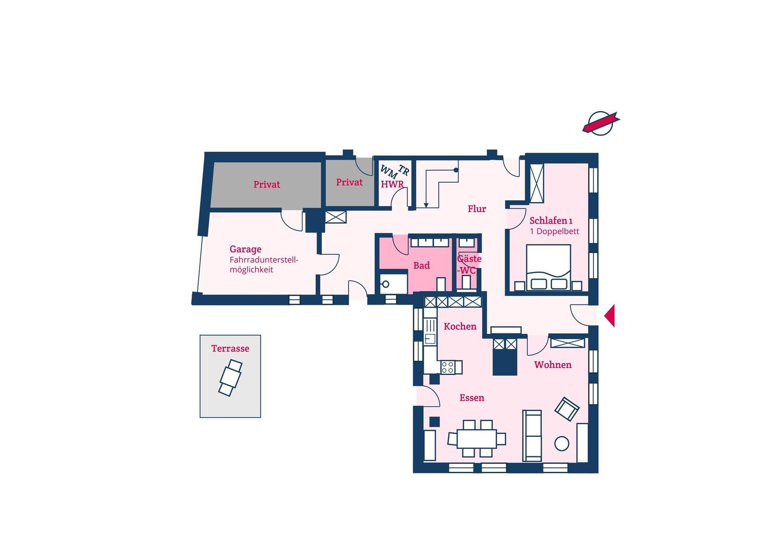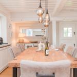 Die Ferienwohnung bietet großzügigen Raum für Erholung und Entspannung. Sie verfügt über vier Schlafzimmer, darunter zwei Doppelbetten und zwei Einzelbetten, die eine ideale Unterkunft für Familien und Gruppen bieten. Die offene Küche ist modern ausgestattet mit Elektro- und Gasherd, Geschirrspüler, Backofen, Kühlschrank und Kaffeemaschine, um kulinarische Köstlichkeiten zuzubereiten. Ein Esstisch lädt zum gemeinsamen Verweilen ein. Die Wohnung ist allergikergeeignet und beinhaltet praktische Annehmlichkeiten wie WLAN, einen Wäschetrockner sowie eine Waschmaschine.
