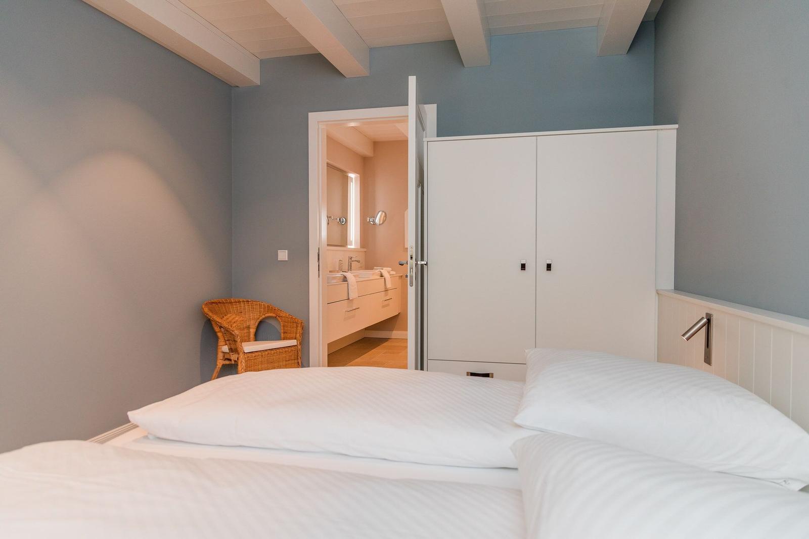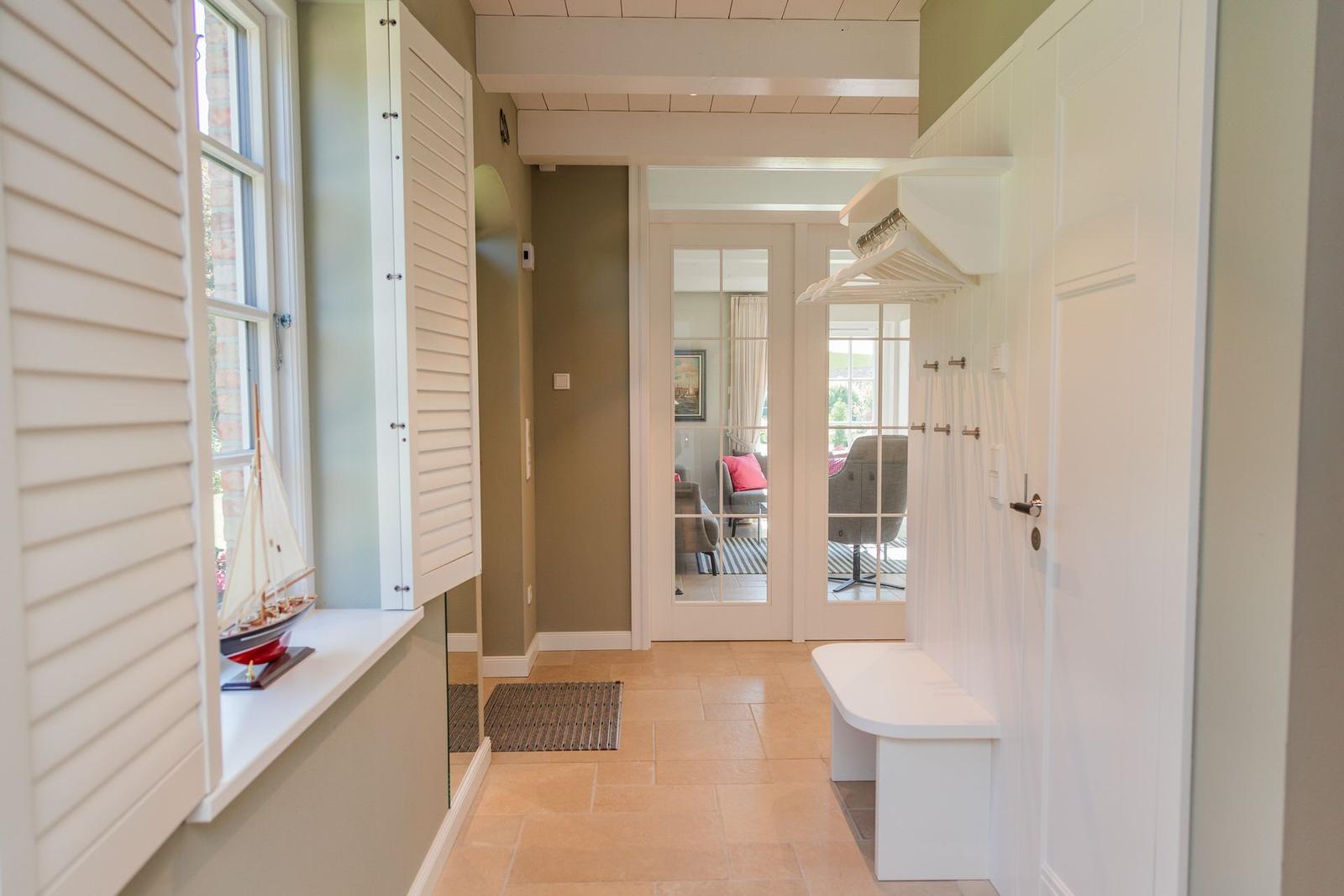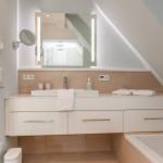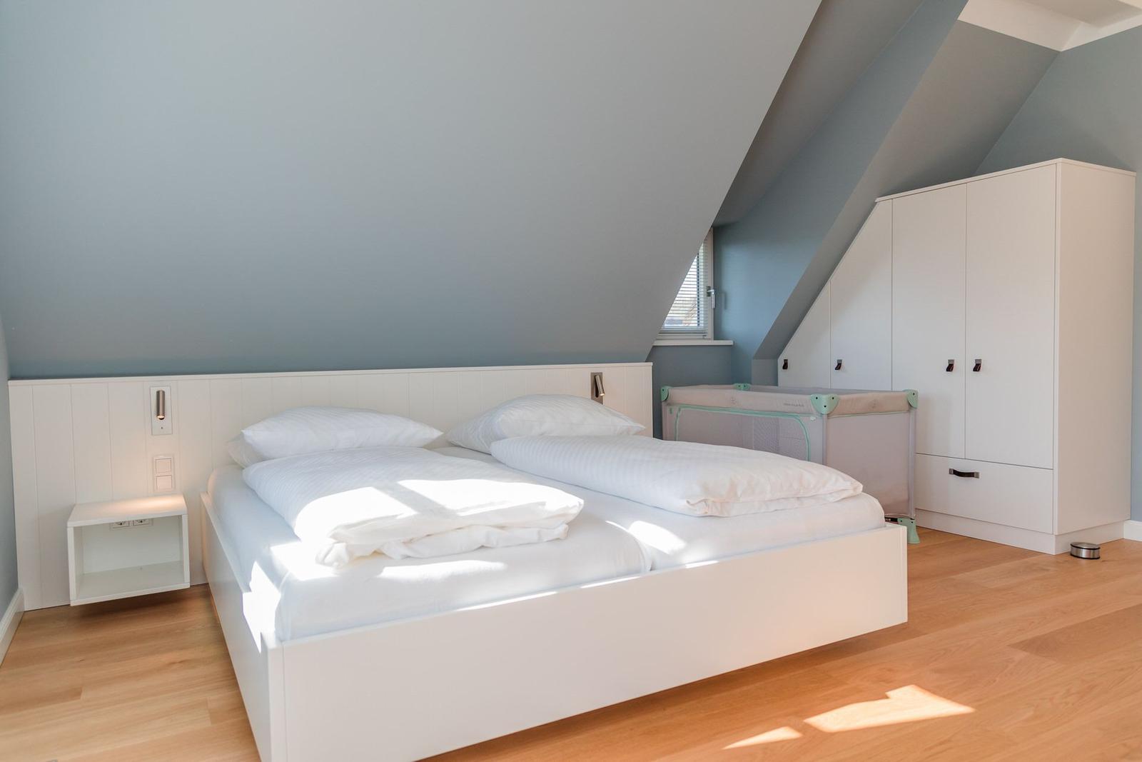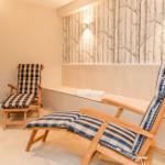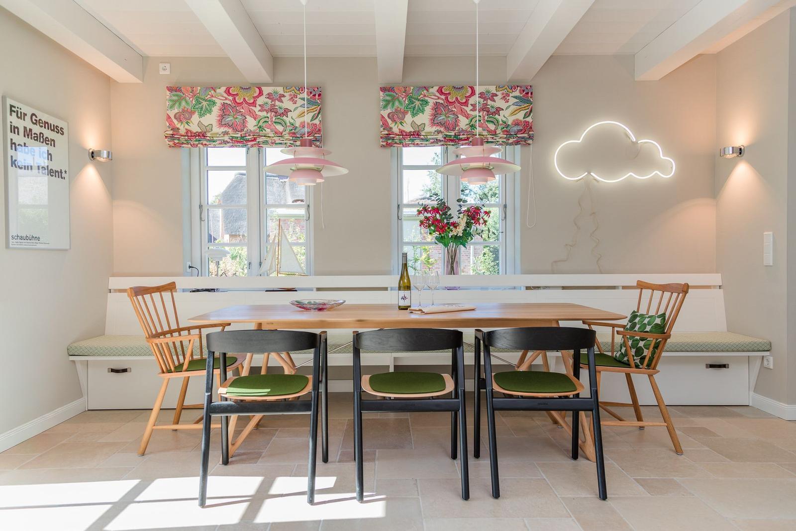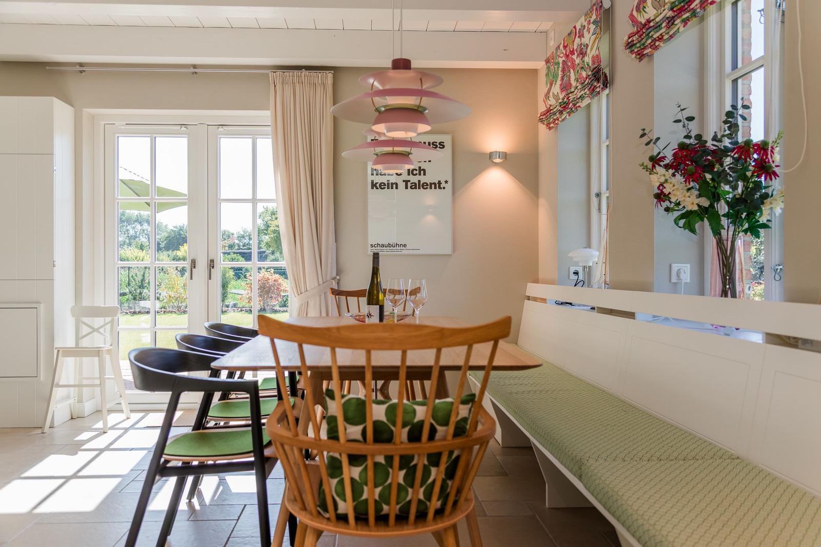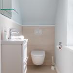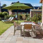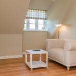 Der exklusive Ferienhausteil Hummerklippen in Süderende bietet für bis zu 6 Personen komfortable Räumlichkeiten. Im Erdgeschoss befinden sich ein großzügiger Wohn- und Essbereich mit offener Küche, ein Schlafzimmer mit Bad en Suite sowie ein Gäste-WC. Der hauseigene Original Mylin-Kachelofen schafft eine gemütliche Atmosphäre. Im Obergeschoss sind zwei weitere Schlafzimmer mit Bad en Suite und ein Loungebereich untergebracht. Das Souterrain beherbergt die hauseigene Sauna mit Ruheraum, Dusche und einen Hauswirtschaftsraum mit Waschmaschine und Trockner. Die Wohnung ist barrierefrei im Zugang, jedoch nicht behindertengerecht, da die Waschbecken im Erdgeschoss nicht unterfahrbar sind. Gemeinschaftliche Elemente wie die Sauna und der Gartenbereich stehen zur Verfügung. Bei der Ausstattung wurde Wert auf hochwertige Materialien gelegt, um den Gästen einen angenehmen Aufenthalt zu gewährleisten.