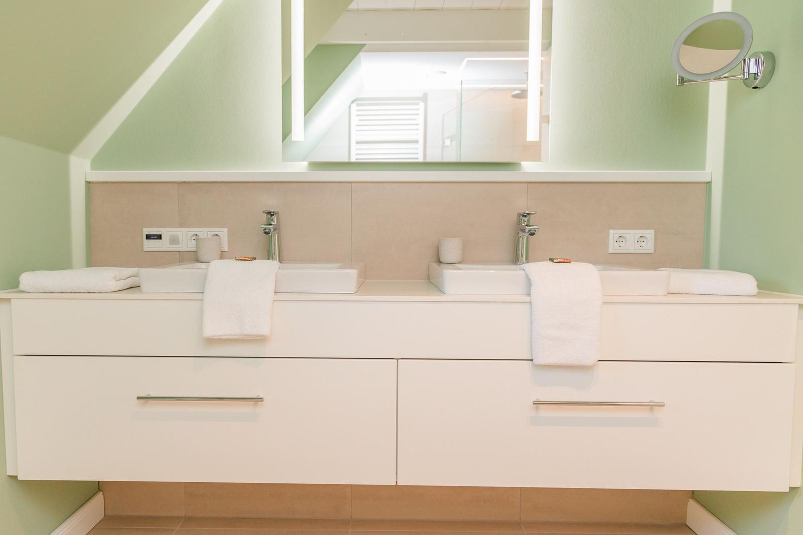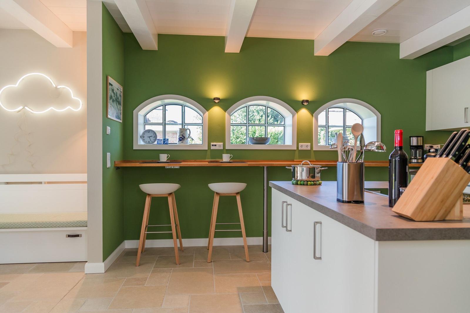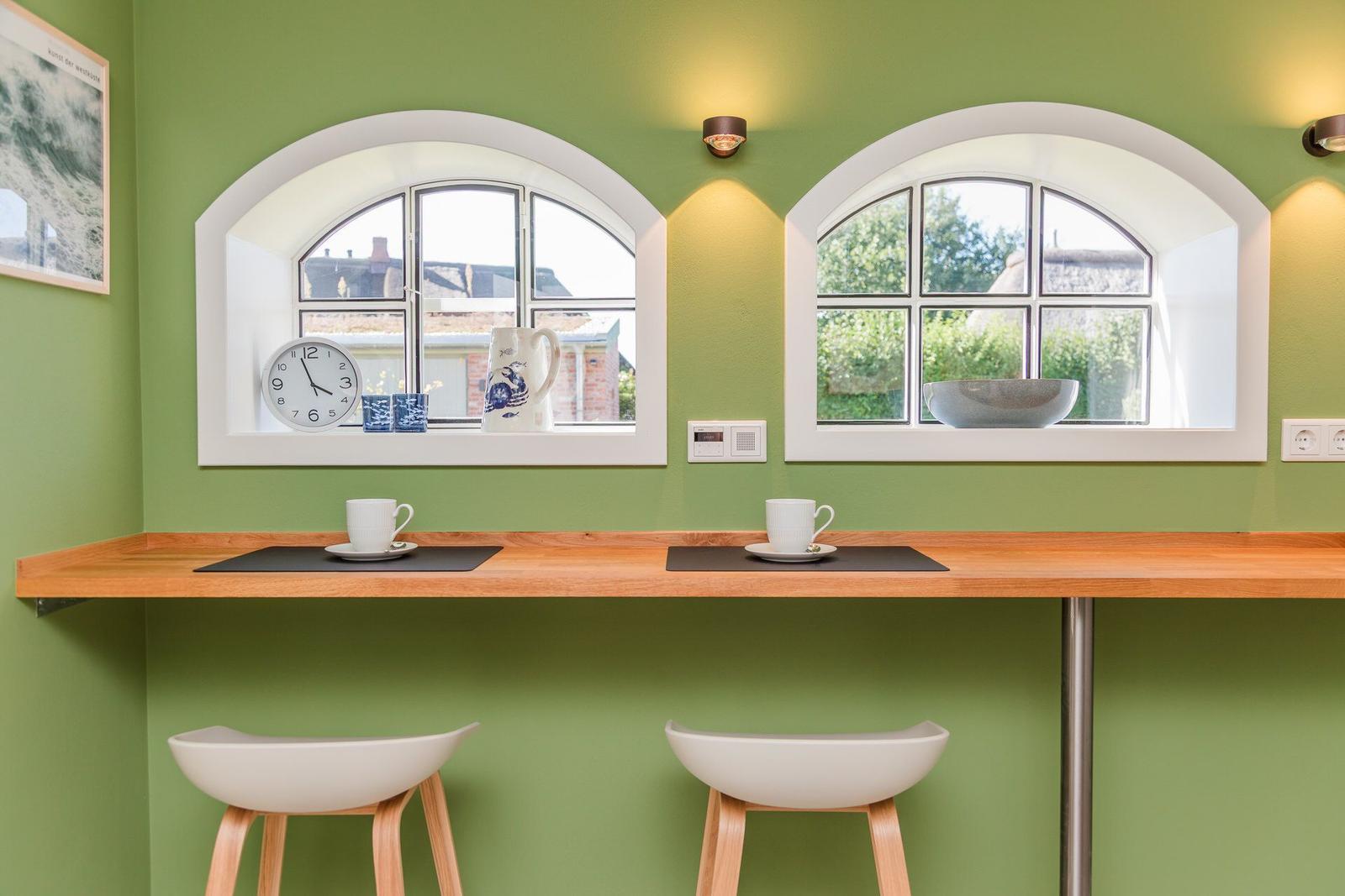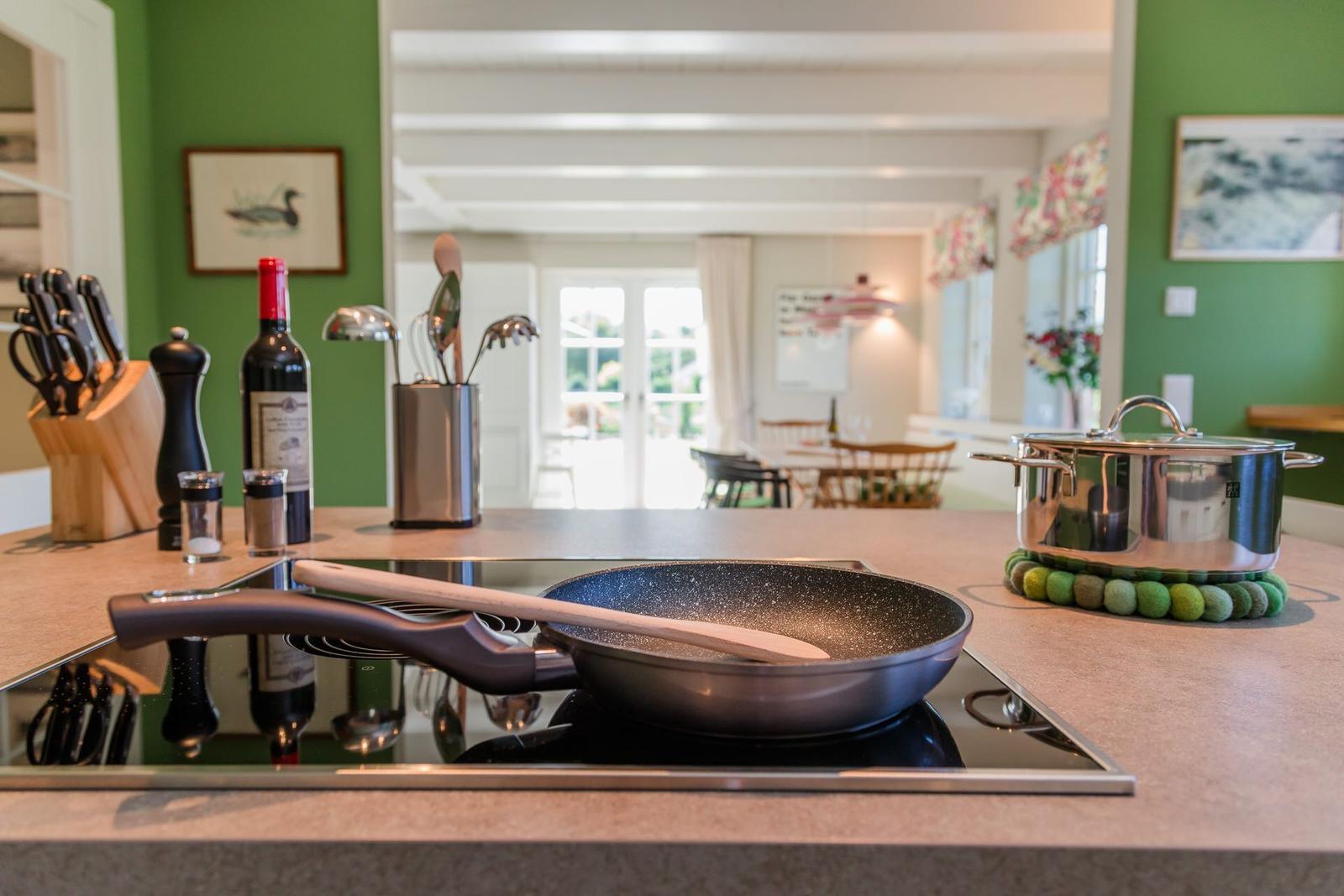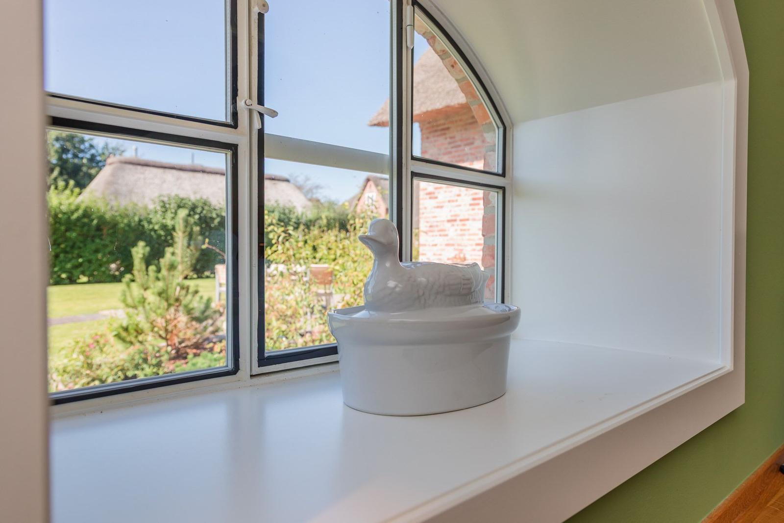 Der exklusive Ferienhausteil Hummerklippen in Süderende bietet für bis zu 6 Personen komfortable Räumlichkeiten. Im Erdgeschoss befinden sich ein großzügiger Wohn- und Essbereich mit offener Küche, ein Schlafzimmer mit Bad en Suite sowie ein Gäste-WC. Der hauseigene Original Mylin-Kachelofen schafft eine gemütliche Atmosphäre. Im Obergeschoss sind zwei weitere Schlafzimmer mit Bad en Suite und ein Loungebereich untergebracht. Das Souterrain beherbergt die hauseigene Sauna mit Ruheraum, Dusche und einen Hauswirtschaftsraum mit Waschmaschine und Trockner. Die Wohnung ist barrierefrei im Zugang, jedoch nicht behindertengerecht, da die Waschbecken im Erdgeschoss nicht unterfahrbar sind. Gemeinschaftliche Elemente wie die Sauna und der Gartenbereich stehen zur Verfügung. Bei der Ausstattung wurde Wert auf hochwertige Materialien gelegt, um den Gästen einen angenehmen Aufenthalt zu gewährleisten.