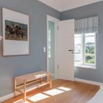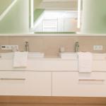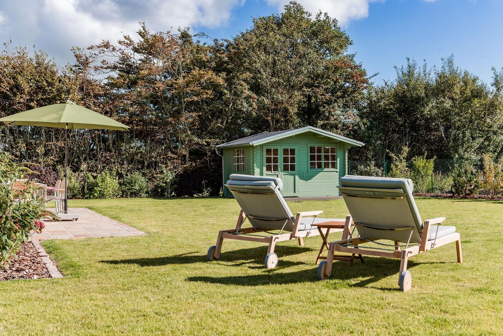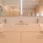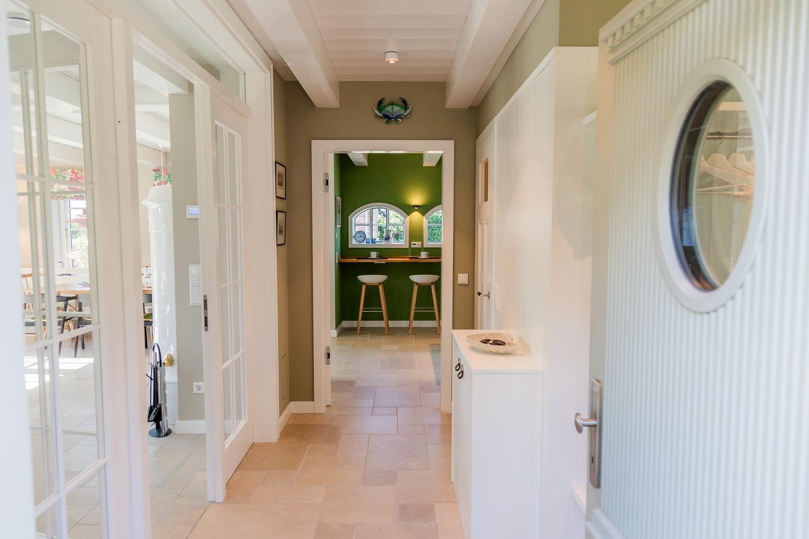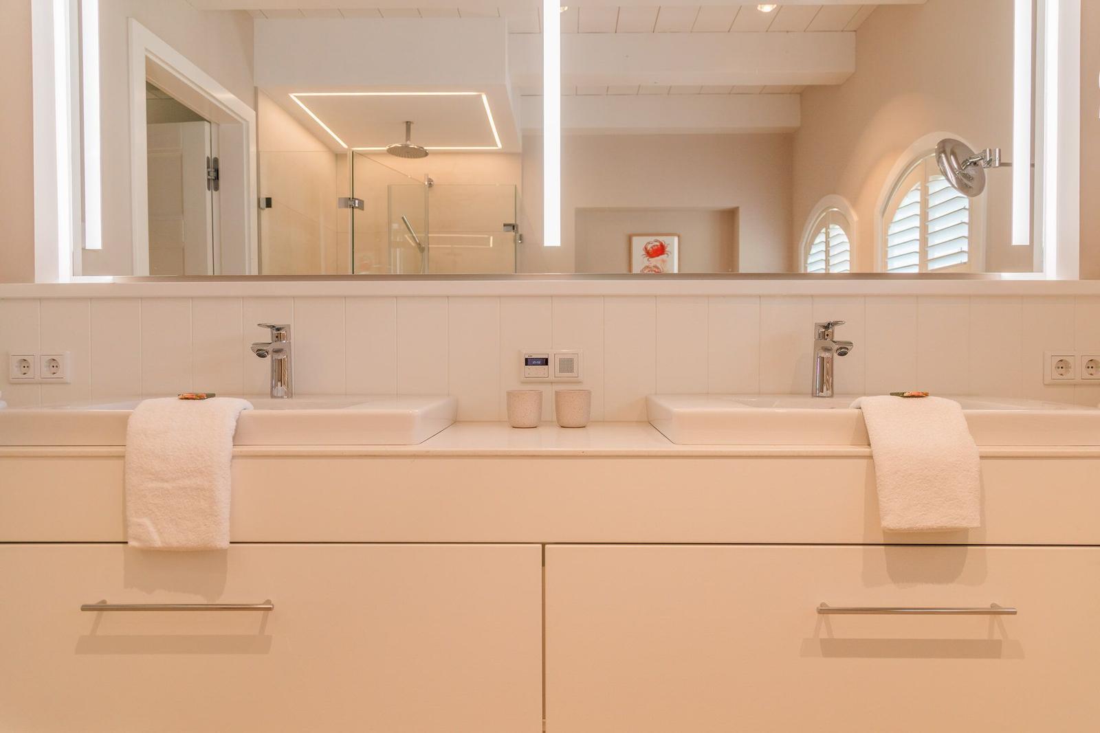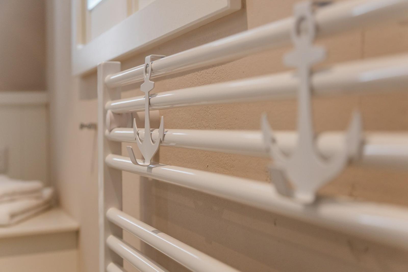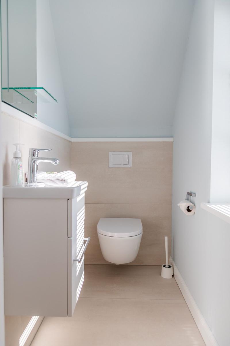 Der exklusive Ferienhausteil Hummerklippen in Süderende bietet für bis zu 6 Personen komfortable Räumlichkeiten. Im Erdgeschoss befinden sich ein großzügiger Wohn- und Essbereich mit offener Küche, ein Schlafzimmer mit Bad en Suite sowie ein Gäste-WC. Der hauseigene Original Mylin-Kachelofen schafft eine gemütliche Atmosphäre. Im Obergeschoss sind zwei weitere Schlafzimmer mit Bad en Suite und ein Loungebereich untergebracht. Das Souterrain beherbergt die hauseigene Sauna mit Ruheraum, Dusche und einen Hauswirtschaftsraum mit Waschmaschine und Trockner. Die Wohnung ist barrierefrei im Zugang, jedoch nicht behindertengerecht, da die Waschbecken im Erdgeschoss nicht unterfahrbar sind. Gemeinschaftliche Elemente wie die Sauna und der Gartenbereich stehen zur Verfügung. Bei der Ausstattung wurde Wert auf hochwertige Materialien gelegt, um den Gästen einen angenehmen Aufenthalt zu gewährleisten.