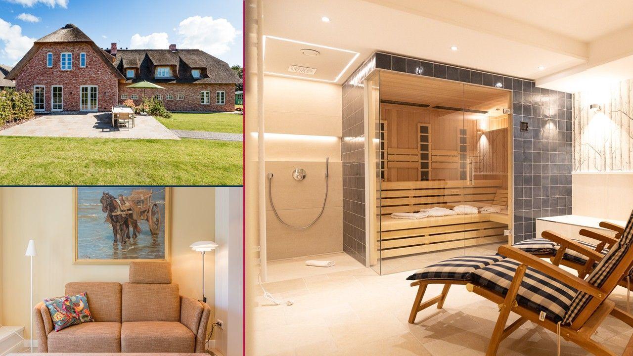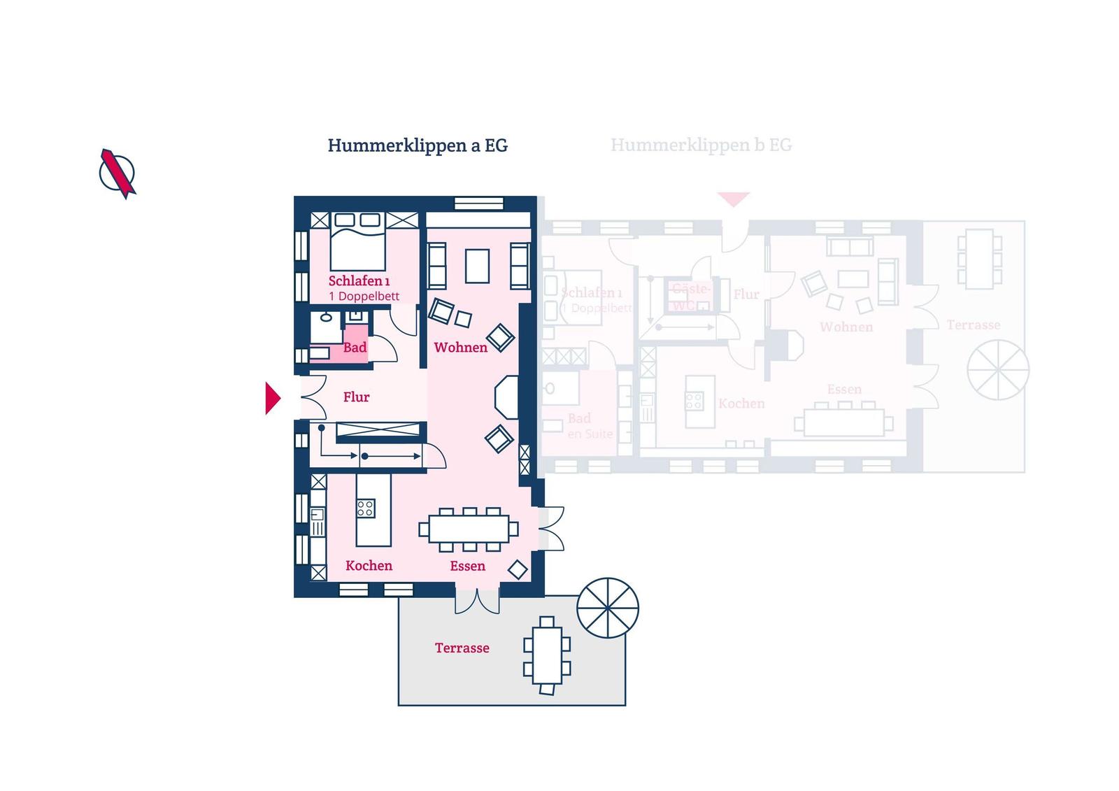 Der exklusive Ferienhausteil Hummerklippen bietet einen großzügigen Außenbereich, der sowohl entspannende als auch aktive Stunden verspricht. Die private Terrasse in südwestlicher Ausrichtung lädt zu gemütlichen Sonnenstunden ein, während der gemeinschaftlich genutzte Garten Platz zum Spielen und Entspannen bietet. Ein modernes Gartenhaus beherbergt die Fahrradunterstellmöglichkeiten, und für die Anreise mit dem Auto stehen zwei PKW-Stellplätze sowie eine E-Auto-Ladestation zur Verfügung. Die Lage ist ideal, um von dort aus die ruhigen Seitenwege zum wunderschönen Badestrand in Utersum zu erkunden. Gäste können die Umgebung für ausgiebige Spaziergänge und Fahrradtouren nutzen, und die einladenden Cafés sowie heimischen Produkte in der Nähe schaffen eine perfekte Urlaubsatmosphäre. An- und Abreise sind in den Monaten Mai bis Oktober an festgelegte Tage gebunden, um den Aufenthalt so angenehm wie möglich zu gestalten.