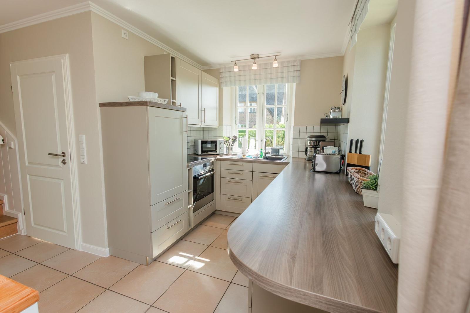 Die Ferienwohnung bietet auf großzügigem Raumkomfort für bis zu vier Personen. Sie verfügt über zwei einladende Schlafzimmer mit je einem Doppelbett, die Allergikerfreundlichkeit garantieren. Die offene Küche ist vollständig ausgestattet und beinhaltet einen Geschirrspüler, Elektro-/Gasherd, Backofen, Mikrowelle und Kühlschrank. Ein Esstisch ermöglicht gesellige Mahlzeiten. Das Badezimmer beeindruckt mit einer bodengleichen Dusche und einem Fenster, während ein Gäste-WC zusätzlichen Komfort bietet.
