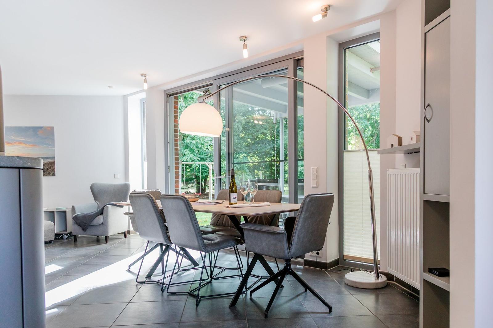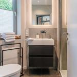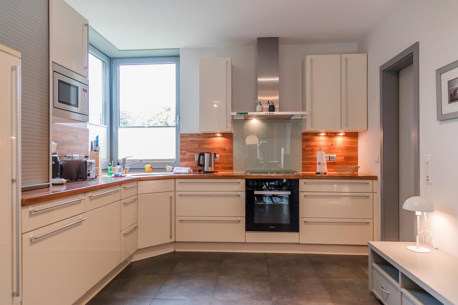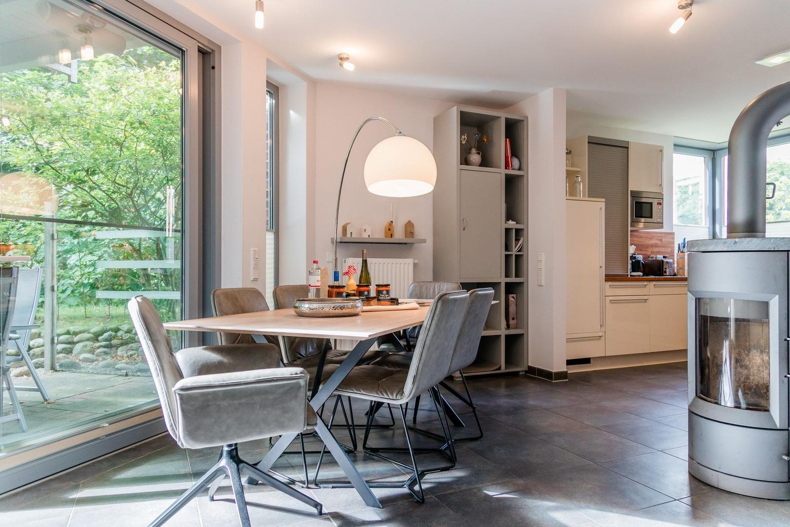 Die Ferienwohnung bietet eine ideale Kombination aus Komfort und modernem Design. Mit drei Schlafzimmern, die jeweils mit drei Doppelbetten und einem Einzelbett ausgestattet sind, sowie drei Badezimmern, eignet sie sich bestens für Familien und Gruppen. Die offene Küche ist voll ausgestattet und umfasst einen Geschirrspüler, Elektro-/Gasherd, Backofen, Mikrowelle und Kühlschrank, sowie eine Kaffeemaschine und eine Espressomaschine für genussvolle Momente.