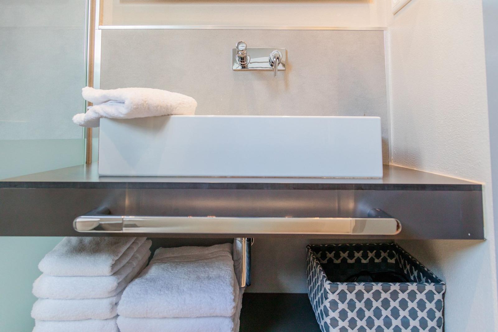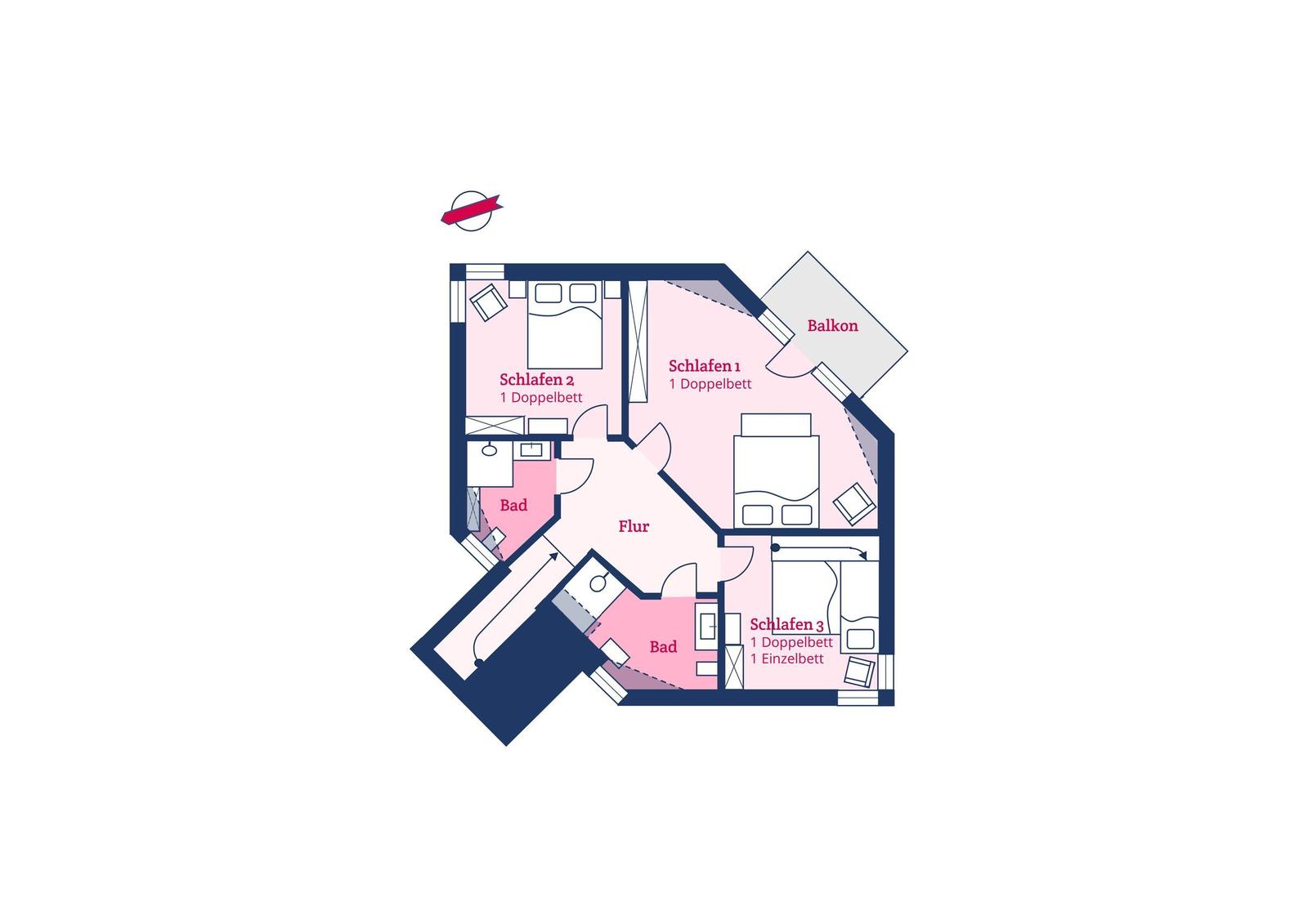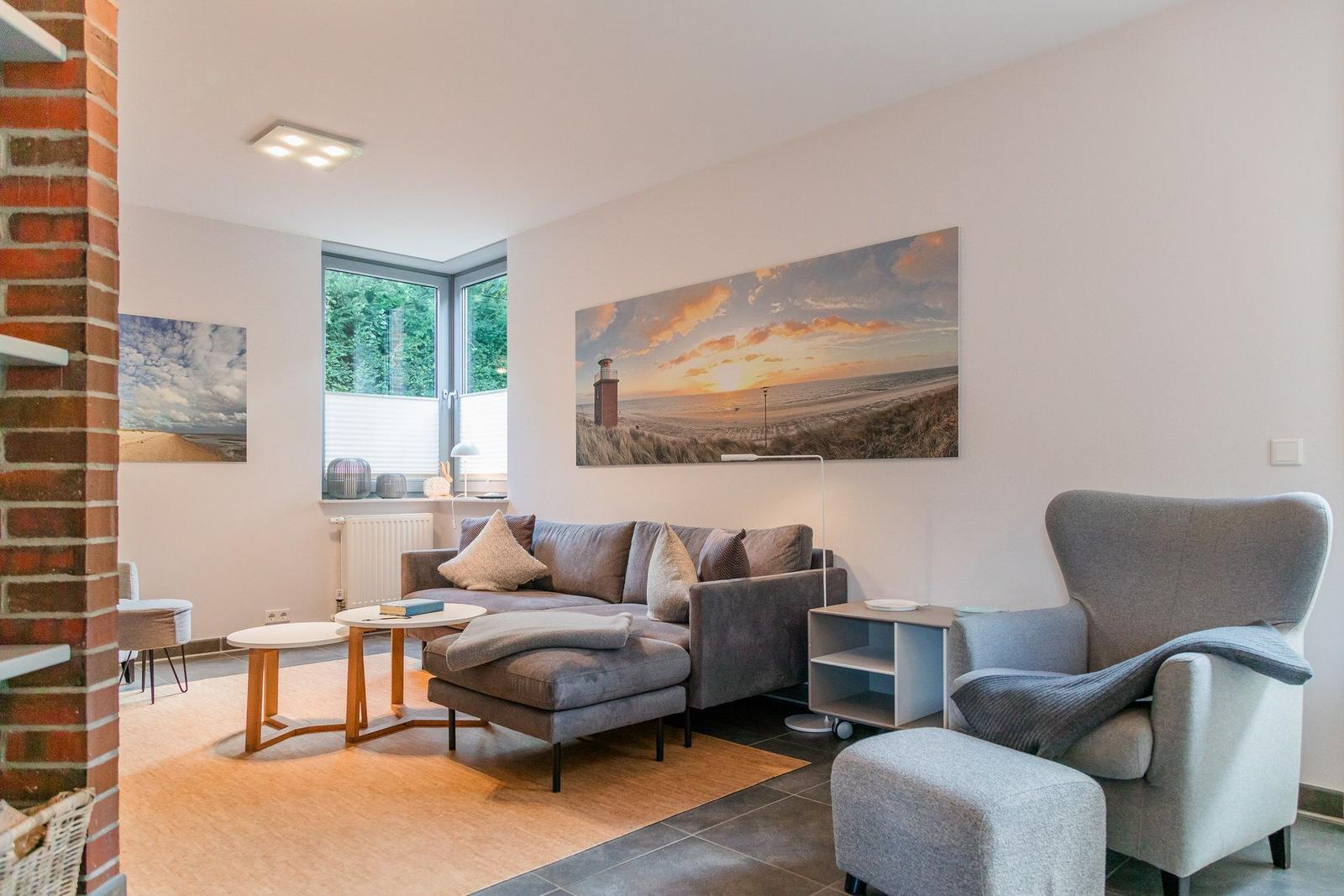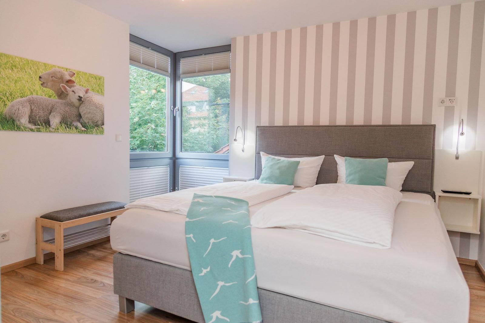Die Ferienwohnung bietet eine ideale Kombination aus Komfort und modernem Design. Mit drei Schlafzimmern, die jeweils mit drei Doppelbetten und einem Einzelbett ausgestattet sind, sowie drei Badezimmern, eignet sie sich bestens für Familien und Gruppen. Die offene Küche ist voll ausgestattet und umfasst einen Geschirrspüler, Elektro-/Gasherd, Backofen, Mikrowelle und Kühlschrank, sowie eine Kaffeemaschine und eine Espressomaschine für genussvolle Momente.