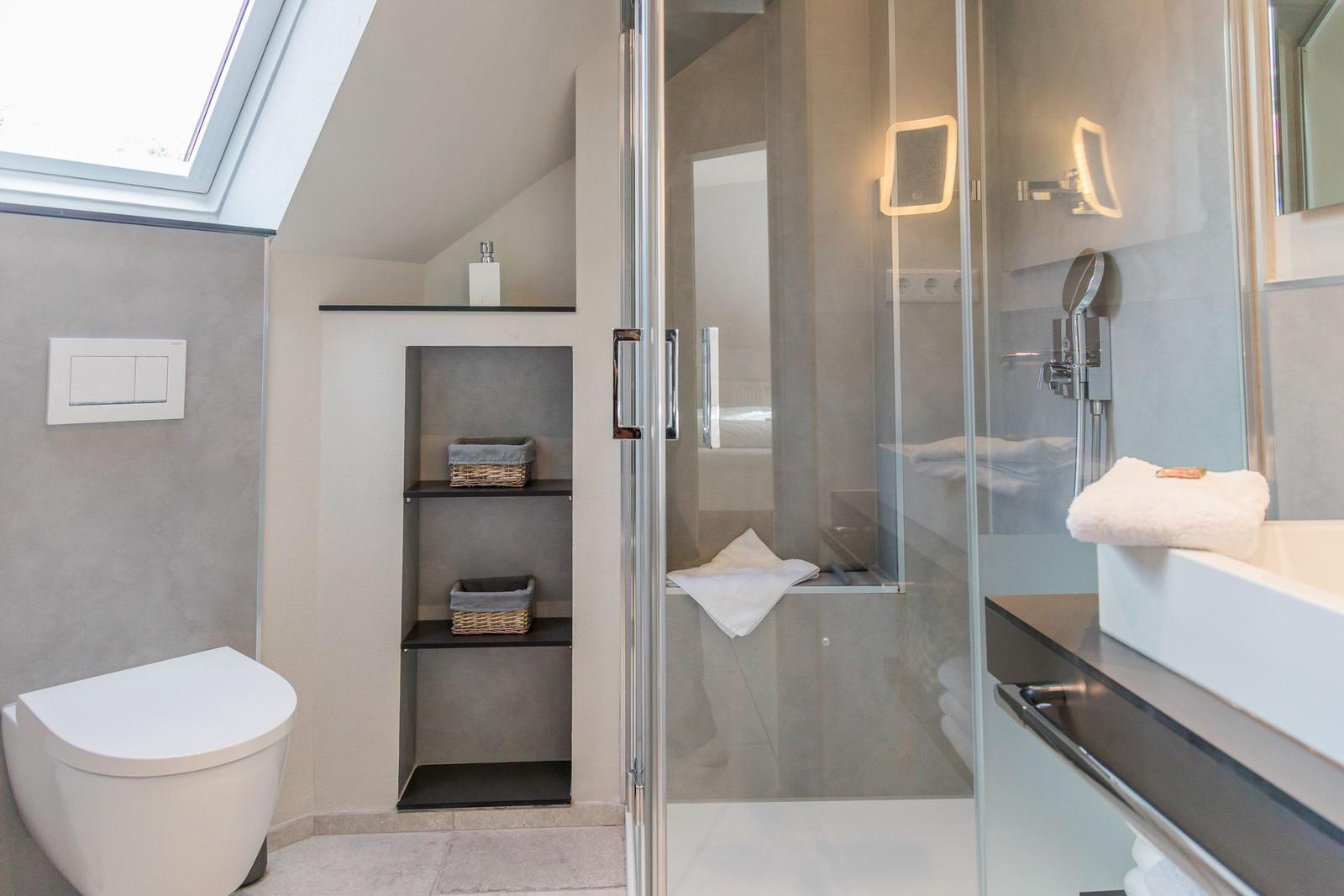 WLAN sorgt für durchgehende Konnektivität, während eine bodengleiche Dusche sowie ein Duschbad mit Haartrockner komfortables Wohnen ermöglichen. Der Kamin sorgt für eine gemütliche Atmosphäre. Weitere Annehmlichkeiten umfassen einen Parkplatz, eine Waschmaschine, einen Wäschetrockner und verschiedene Freizeitmöglichkeiten wie Brettspiele. Allergikerfreundliche Elemente garantieren einen erholsamen Aufenthalt in dieser gut ausgestatteten Ferienwohnung.