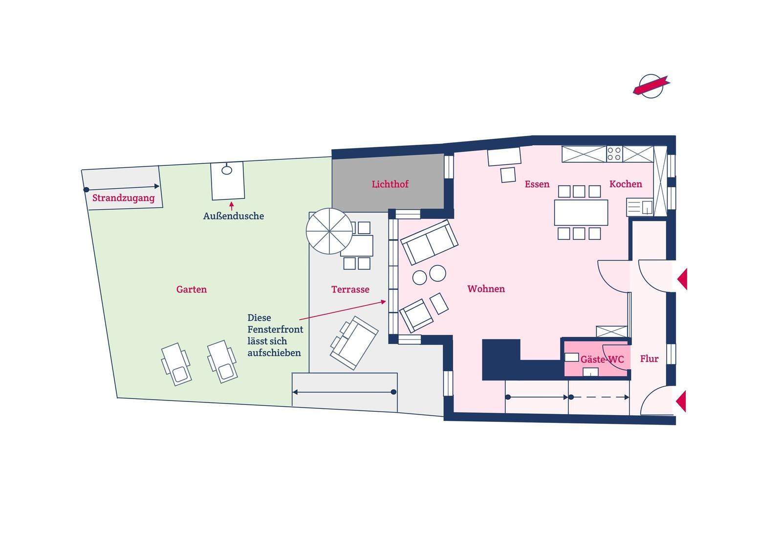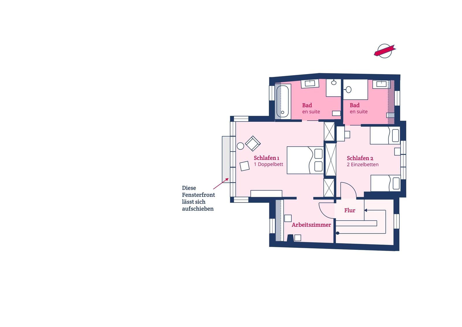 In dieser komfortablen Ferienwohnung erwarten die Gäste drei geschmackvoll eingerichtete Schlafzimmer, darunter ein Doppelbett und vier Einzelbetten, die für einen erholsamen Aufenthalt sorgen. Die offene Küche ist modern ausgestattet und verfügt über einen Geschirrspüler, Elektro-/Gasherd, Backofen, Mikrowelle, Kühlschrank und eine Kaffeemaschine, um das Kochen zum Vergnügen zu machen. Ein gemütlicher Esstisch lädt zu geselligen Mahlzeiten ein. Die drei Badezimmer bieten ein hohes Maß an Komfort, darunter eine bodengleiche Dusche, eine Badewanne und hochwertige Pflegeprodukte im Starterset. Zur weiteren Ausstattung zählen WLAN, ein Kamin, eine HiFi-Anlage, TV sowie praktische Haushaltsgeräte wie Waschmaschine und Wäschetrockner. Die allergikergeeignete Umgebung, Fußbodenheizung und ein Privatbereich runden das Angebot ab. Perfekt für Familien oder Gruppen, die einen unvergesslichen Urlaub verbringen möchten.