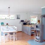 Herzlich Willkommen Wyk auf Föhr. Der freistehende Bungalow auf 750 qm Grundstück, mit Terrasse und großem Garten liegt nahe am Südstrand in der Waldstraße. Die Südterrasse lädt zum Grillen und Verweilen ein. Über 125 qm erstrecken sich die hellen Zimmer in diesem Nichtraucher-Haus. Großzügig und gemütlich eingerichtet hat man hier die Möglichkeit einen entspannten und ruhigen Urlaub zu verbringen. Im WOHN-/ESSBEREICH relaxen Sie auf einer sehr gemütlichen Sitzecke, SMART-TV, Soundbar und HiFi-Anlage lassen keine Wünsche offen. Der Essbereich verfügt über einen großzügigen Tisch mit 4 Stühlen. Für gemütliche Stunden in der kalten Jahreszeit steht ein Kaminofen bereit. Die offene Küche ist komplett ausgestattet, ein zusätzlicher Vorrats-/Abstellraum mit Waschmaschine, Trockner und Mini-Gefrierschrank steht zur Verfügung. Das SCHLAFZIMMER 1 ist mit einem Doppelbett (1,80 X 2 m), einer Kommode und einem 4-türigen Kleiderschrank eingerichtet. Das BADEZIMMER ist gut ausgestattet mit bodenebener Dusche, Eck-Badewanne, WC und genügend Stauraum. Das SCHLAFZIMMER 2 ist mit einem Doppelbett (160 x 2,00 m), einem Schrank (2 Türen, 2 Schubladen) und SMART-TV mit 55 Zoll eingerichtet. Zusätzlich verfügt die Wohnung über ein Gäste-WC.