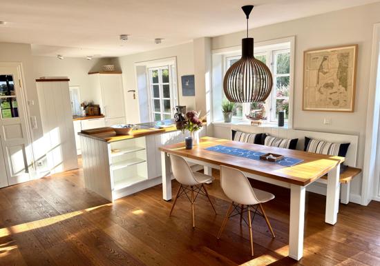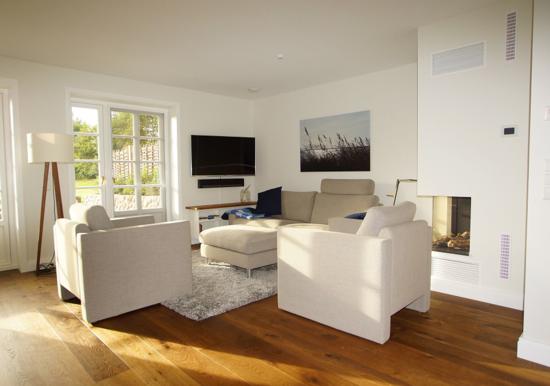 Erdgeschoss: Diele mit Treppenaufgang und Garderobe, Hauswirtschaftsraum mit Waschmaschine und Trockner, Gäste-WC, Küche mit Durchgang zum großzügigen Wohn- und Esszimmer (mit hist. Kachelofen, 2 xFlat-TV, DVD-Player etc.) und Ausgang auf den Terrassenbereich.