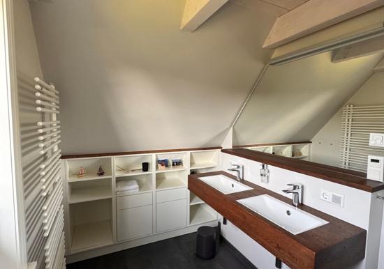Dachgeschoss: Duschbad/WC, weiteres Bad mit Badewanne, Dusche und WC, zwei Schlafzimmer jeweils mit Doppelbett, Aufgang in den Spitzboden.
