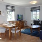 Die Ferienwohnung bietet eine ideale Umgebung für einen erholsamen Aufenthalt. Mit drei Schlafzimmern, ausgestattet mit zwei Doppelbetten und zwei Einzelbetten, finden bis zu sechs Gäste Platz. Die separate Küche ist mit modernsten Geräten ausgestattet, darunter ein Geschirrspüler, ein Elektro-/Gasherd, ein Backofen sowie ein Kühlschrank mit Gefriermöglichkeit. Zusätzlich stehen eine Kaffeemaschine, ein Wasserkocher, ein Toaster und Geschirr sowie Besteck bereit. Das Badezimmer verfügt über eine bodengleiche Dusche und ein Fenster, während das Duschbad durch einen Spiegel und einen Schrank ergänzt wird. Wohn- und Essbereich laden zum Verweilen ein, mit einem Sofa, einem Sessel und einem Esstisch. Für den Komfort sorgen WLAN, Heizung sowie ein Starterset Reinigungsmittel. Die Wohnung ist allergikergeeignet, und eine Garderobe sowie ein Rauchmelder runden die umfangreiche Ausstattung ab. Zudem steht ein Sonnenschirm für entspannte Stunden im Freien zur Verfügung.