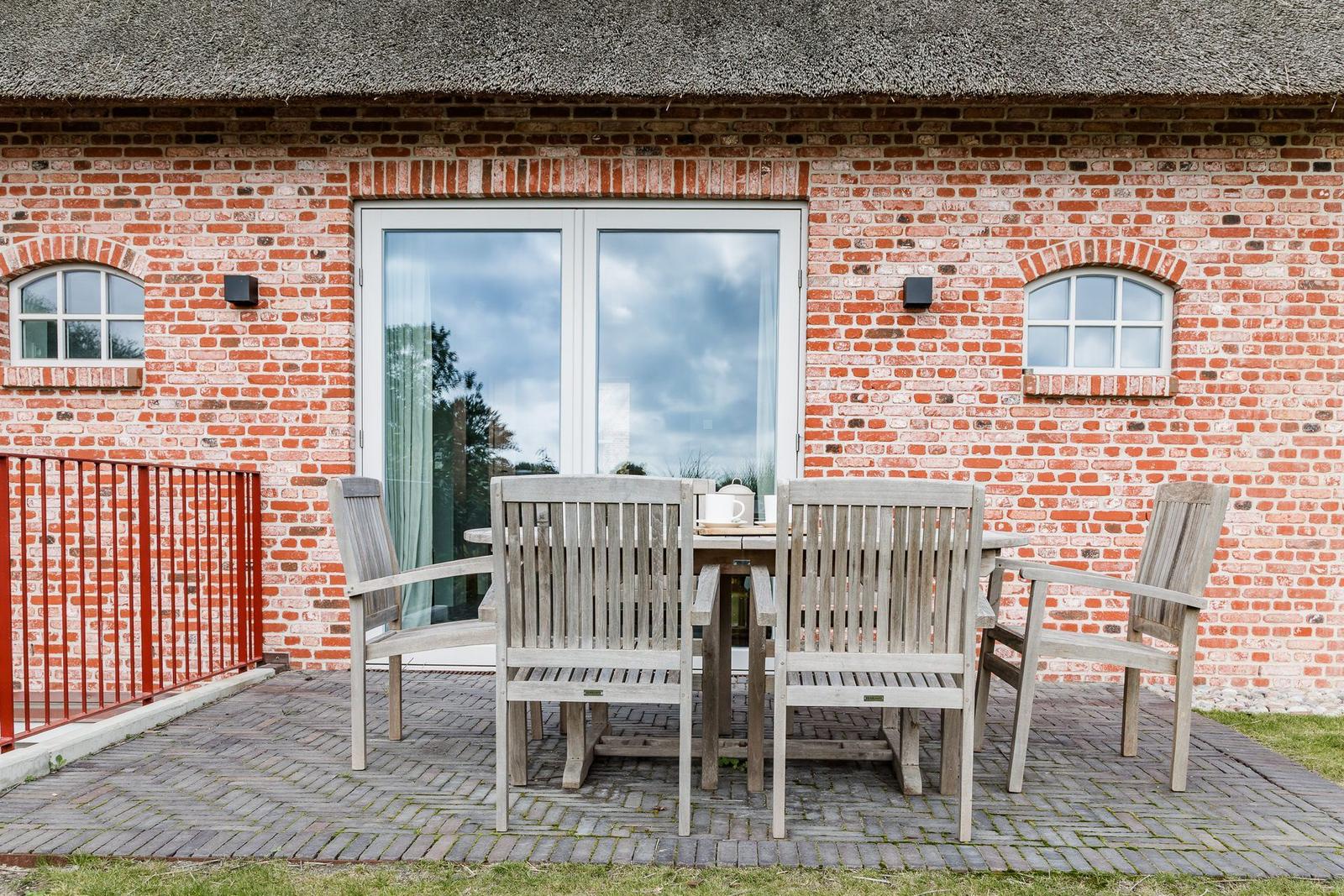 Die reetgedeckte Doppelhaushälfte Ual Smes, idyllisch am Ortsrand von Alkersum gelegen, bietet einen einladenden Außenbereich mit einer Terrasse im eigenen Garten. Gäste können auf der östlich ausgerichteten Terrasse entspannt in den Tag starten und die Ruhe der Umgebung genießen. Der Garten ist perfekt für kleine Entspannungspausen im Freien. Die Lage eignet sich zudem hervorragend für ausgiebige Radtouren und Spaziergänge durch die umliegenden Wiesen und Felder. Die Garten- und Terrassennutzung ist privat, wodurch eine angenehme Rückzugsmöglichkeit garantiert ist. Des Weiteren steht ein hauseigener PKW-Stellplatz zur Verfügung. In unmittelbarer Nähe finden sich vielfältige Freizeitmöglichkeiten, darunter Restaurants, Cafés und Spielplätze, die den Aufenthalt in dieser bezaubernden Umgebung abrunden.