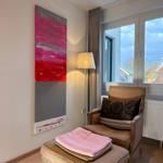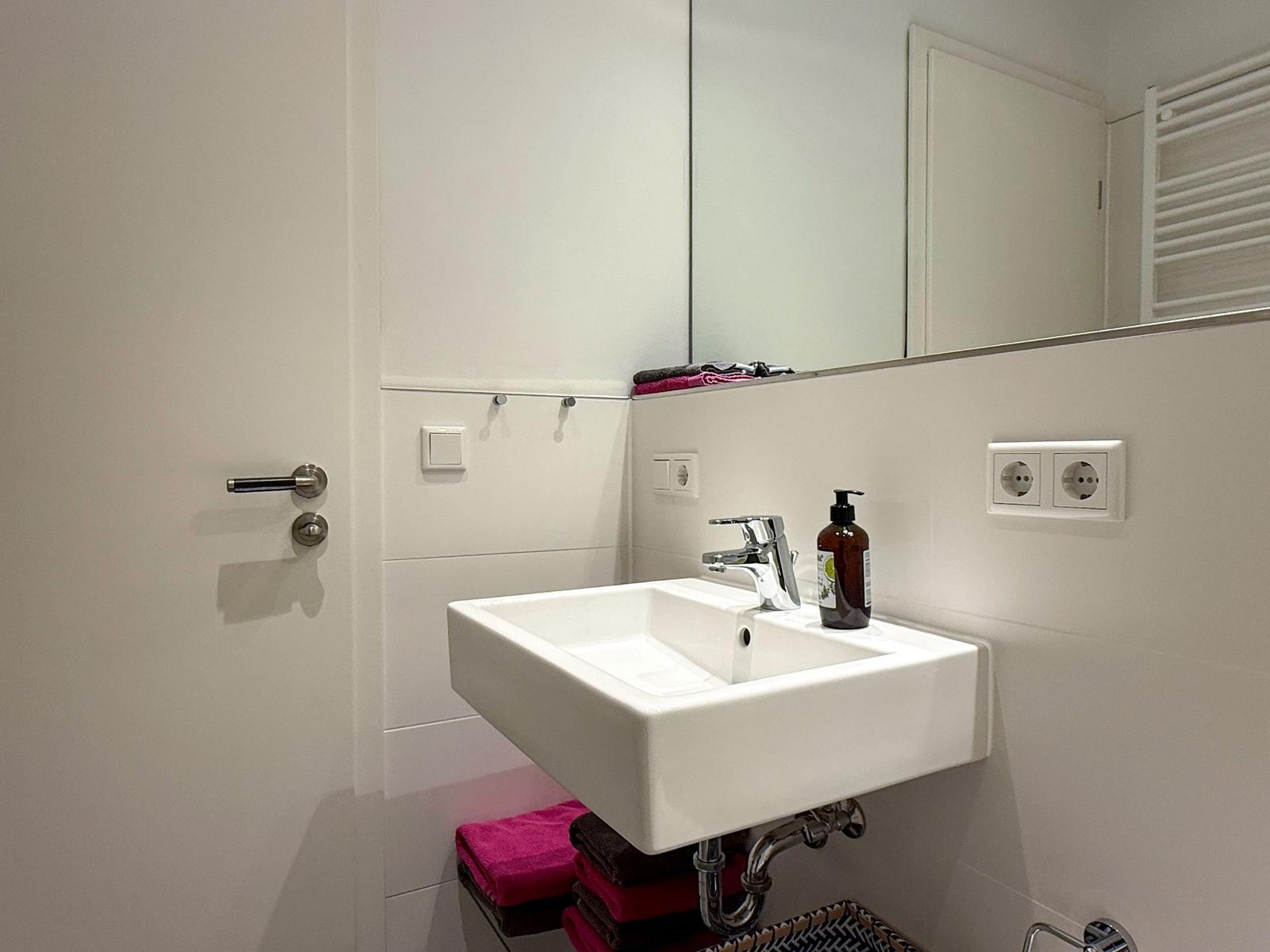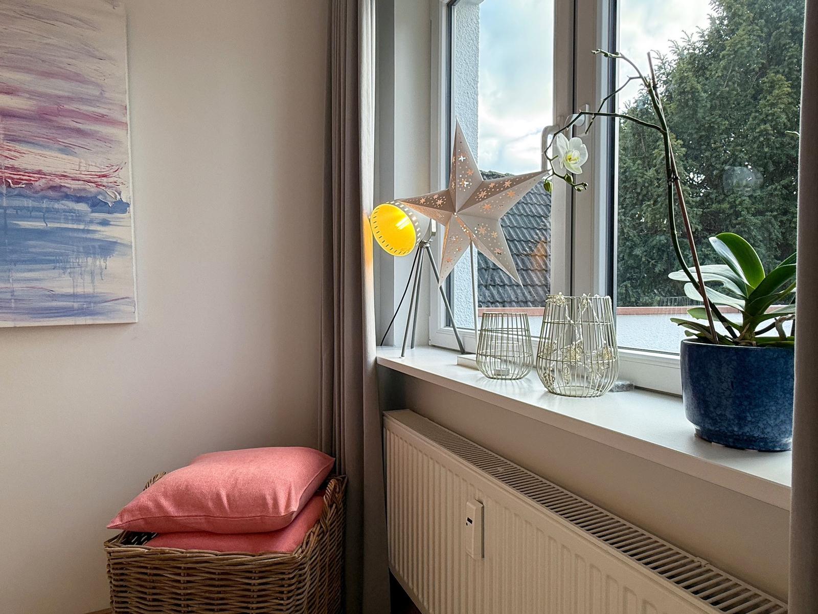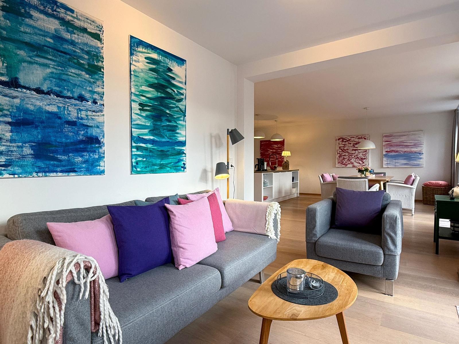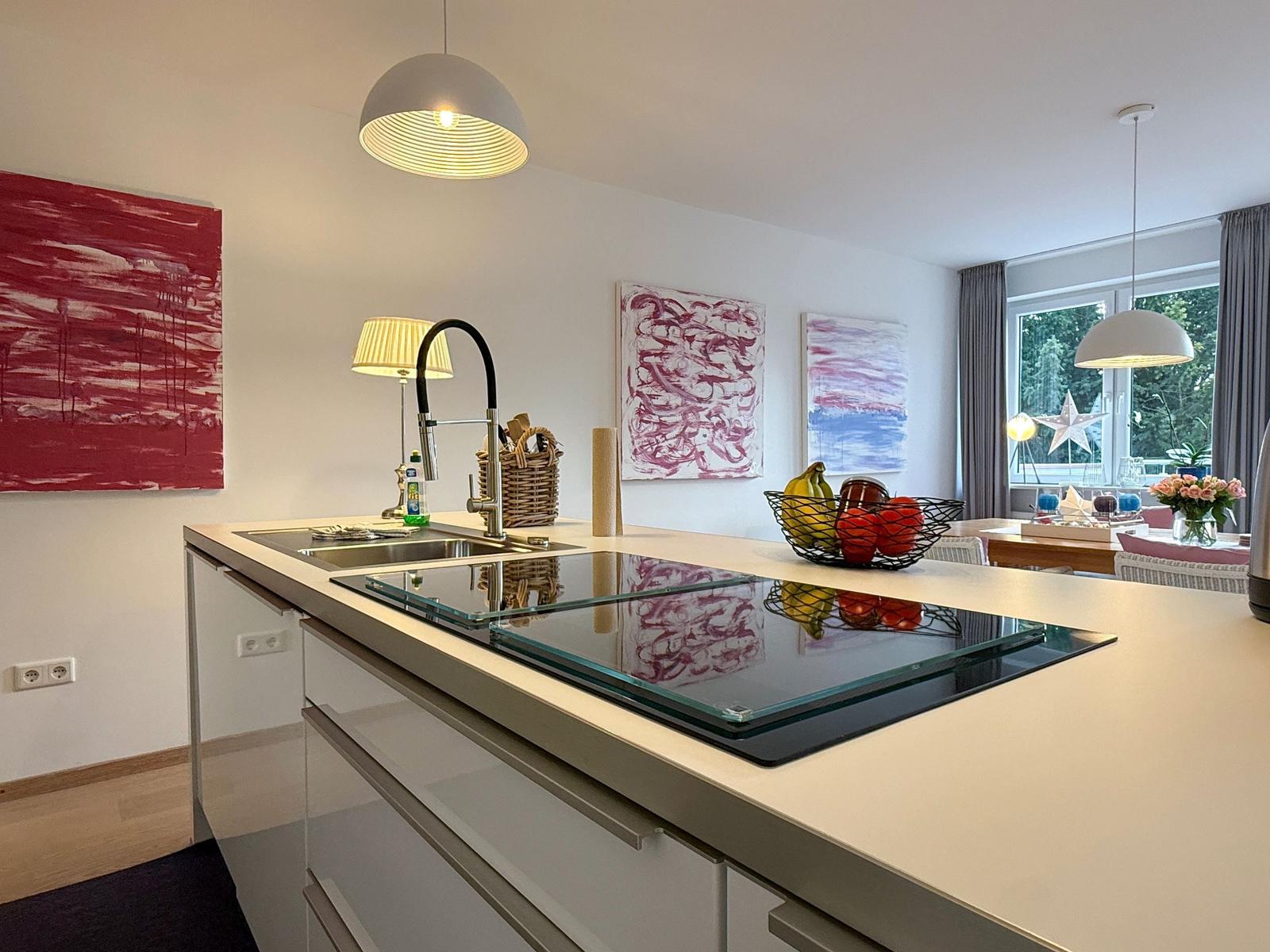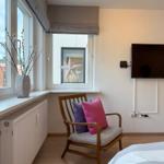 Die moderne Stadtwohnung über den Dächern von Wyk liegt direkt in der Wyker Innenstadt. Strand und Meer, Wyks Promenade mit den Kaffees, Restaurants und Läden oder Hafen sind in 5 Gehminuten erreichbar.