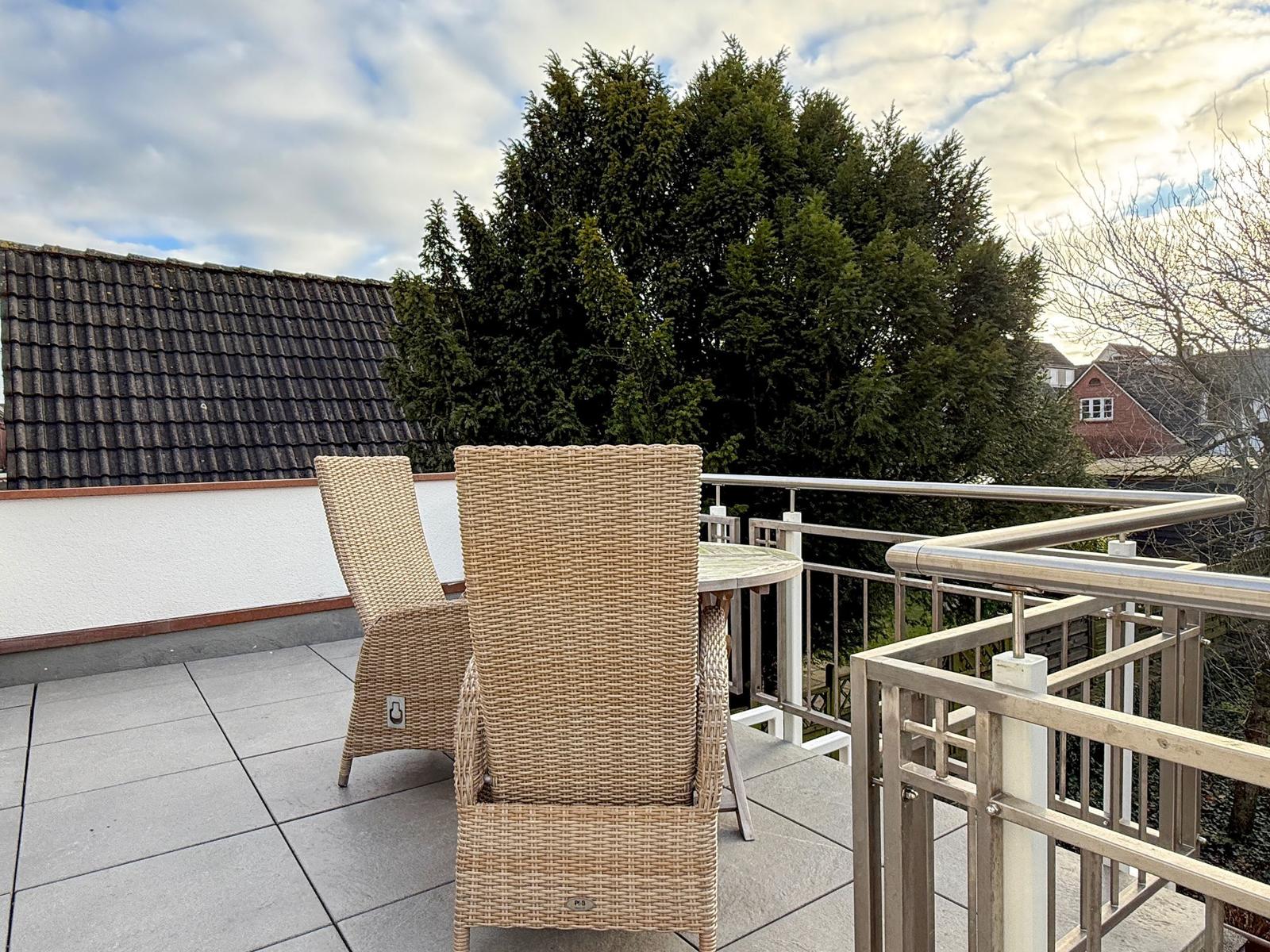 Moderne Stadtwohnung über den Dächern von Wyk – Großzügige Dachterrasse und lichtdurchflutetes WohnenErleben Sie die perfekte Kombination aus urbanem Wohnkomfort und nordischer Klarheit in dieser modernen Stadtwohnung über den Dächern von Wyk am Nordseestrand. Die großzügige Dachterrasse zum idyllischen Innenhof lädt zum Entspannen ein – hier genießen Sie Ruhe und Privatsphäre mitten in der Stadt.