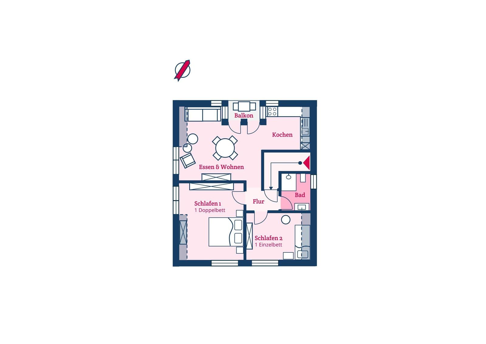 Die Wohnung ist sehr zentral in der Wyker Innenstadt gelegen. Von dort aus können Sie alles fußläufig erreichen, auch den begehrten Wyker Badestrand.