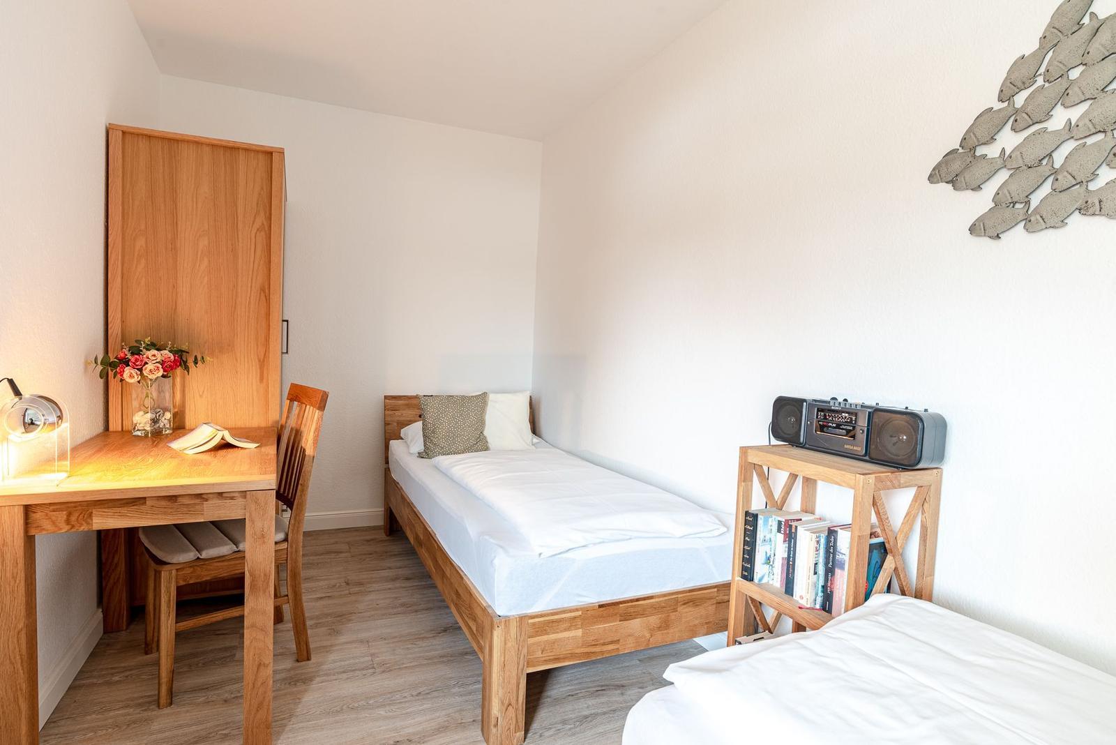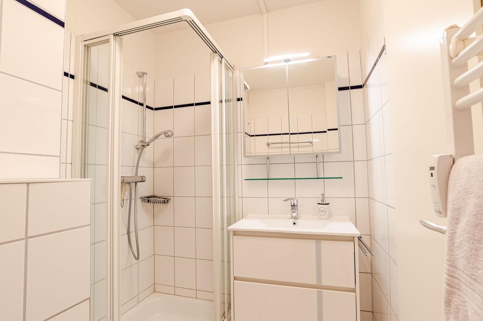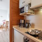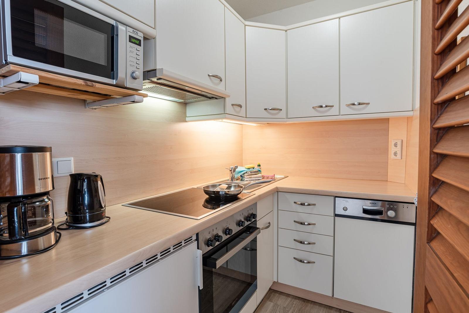 Die Ferienwohnung bietet eine einladende und gemütliche Atmosphäre mit zwei Schlafzimmern, ausgestattet mit einem Doppelbett und zwei Einzelbetten. Die offene Küche ist mit modernen Annehmlichkeiten versehen, darunter Geschirrspüler, Elektro-/Gasherd, Backofen, Mikrowelle und Kühlschrank. Zusätzliche Geräte wie eine Kaffeemaschine, ein Toaster und ein Mixer sorgen für Komfort beim Kochen. Das Badezimmer verfügt über eine Dusche, Haartrockner und einen Kosmetikspiegel.