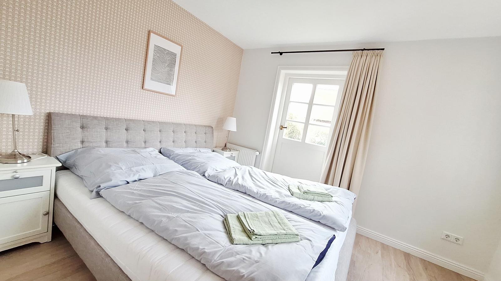 Die Wohnung im Erdgeschoss bietet Platz für bis zu zwei Personen und verfügt über einen direkten Zugang zum Garten