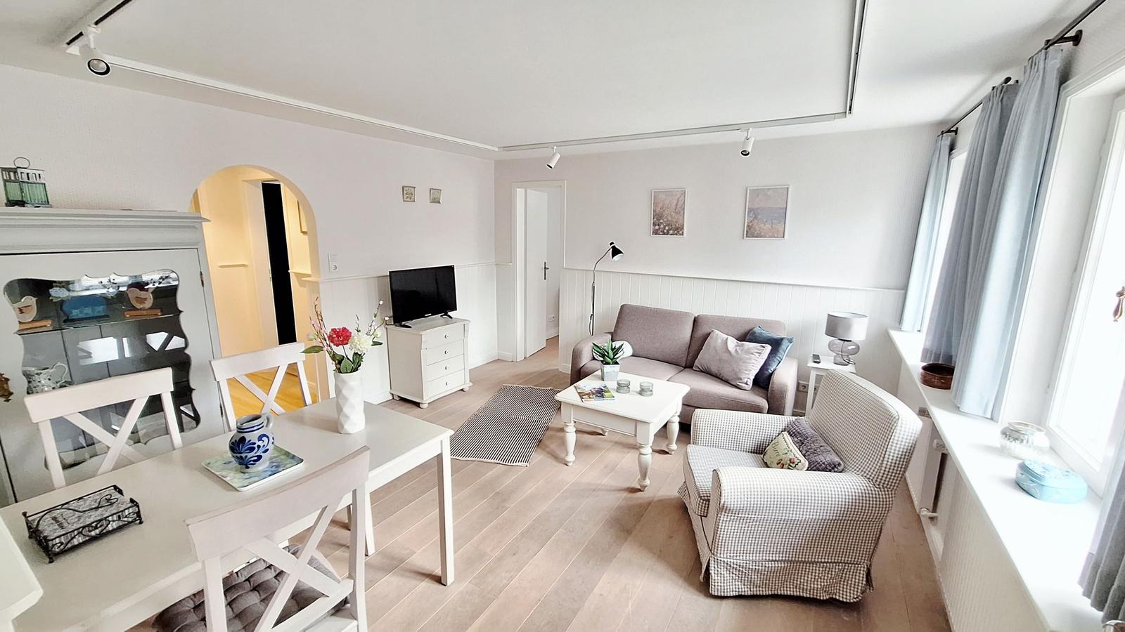 Die gemütliche Wohnung im Erdgeschoss bietet Platz für bis zu drei Personen.