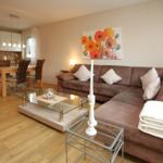 In dieser ansprechenden Ferienwohnung erwartet die Gäste eine komfortable Ausstattung, die für einen angenehmen Aufenthalt sorgt. Ein einladendes Schlafzimmer mit einem Doppelbett und ein gemütliches Wohnschlafzimmer mit zwei Einzelbetten bieten ausreichend Platz für Entspannung und Erholung. Das moderne Badezimmer ist mit einem Duschbad ausgestattet und verfügt über einen Haartrockner.