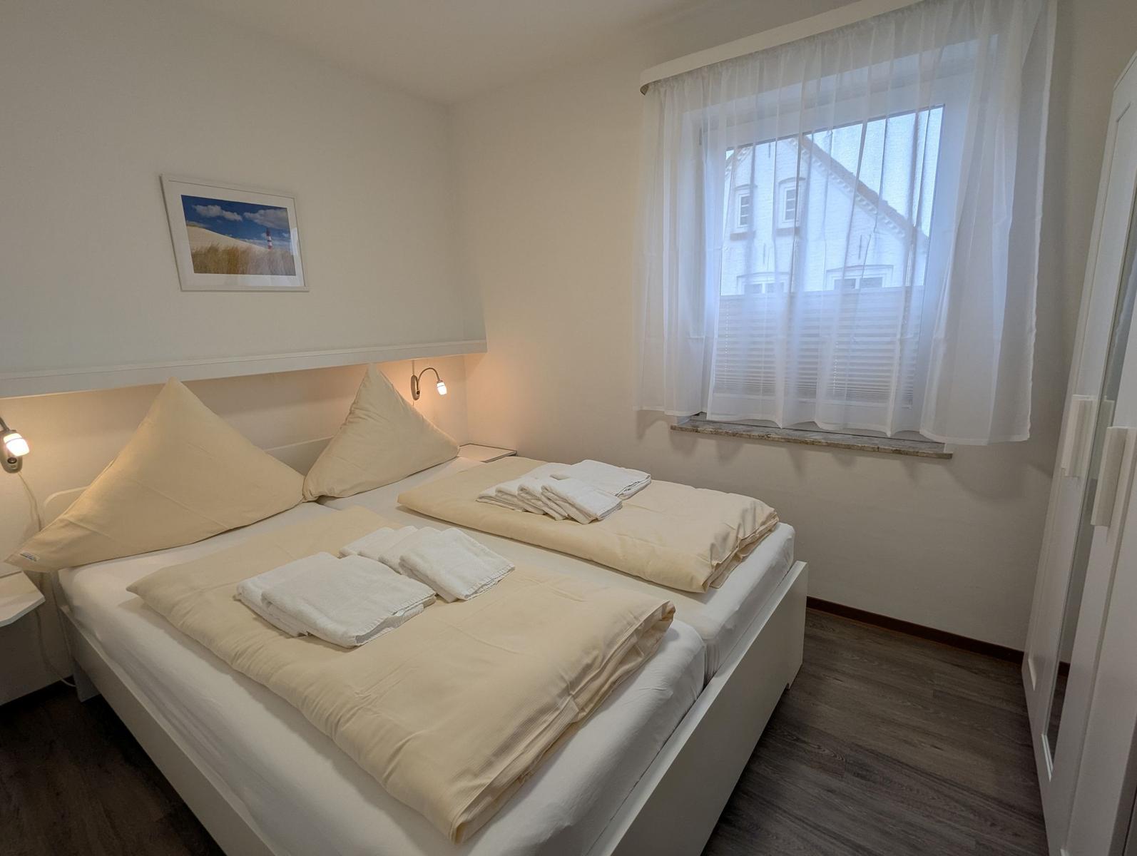 Die Ferienwohnung bietet eine komfortable und allergikergeeignete Unterkunft mit einem einladenden Ambiente. Sie verfügt über zwei gemütliche Schlafzimmer – eines mit einem Doppelbett und eines mit einem Einzelbett. Ein modernes Badezimmer mit Duschbad und Fenster sorgt für zusätzlichen Komfort.