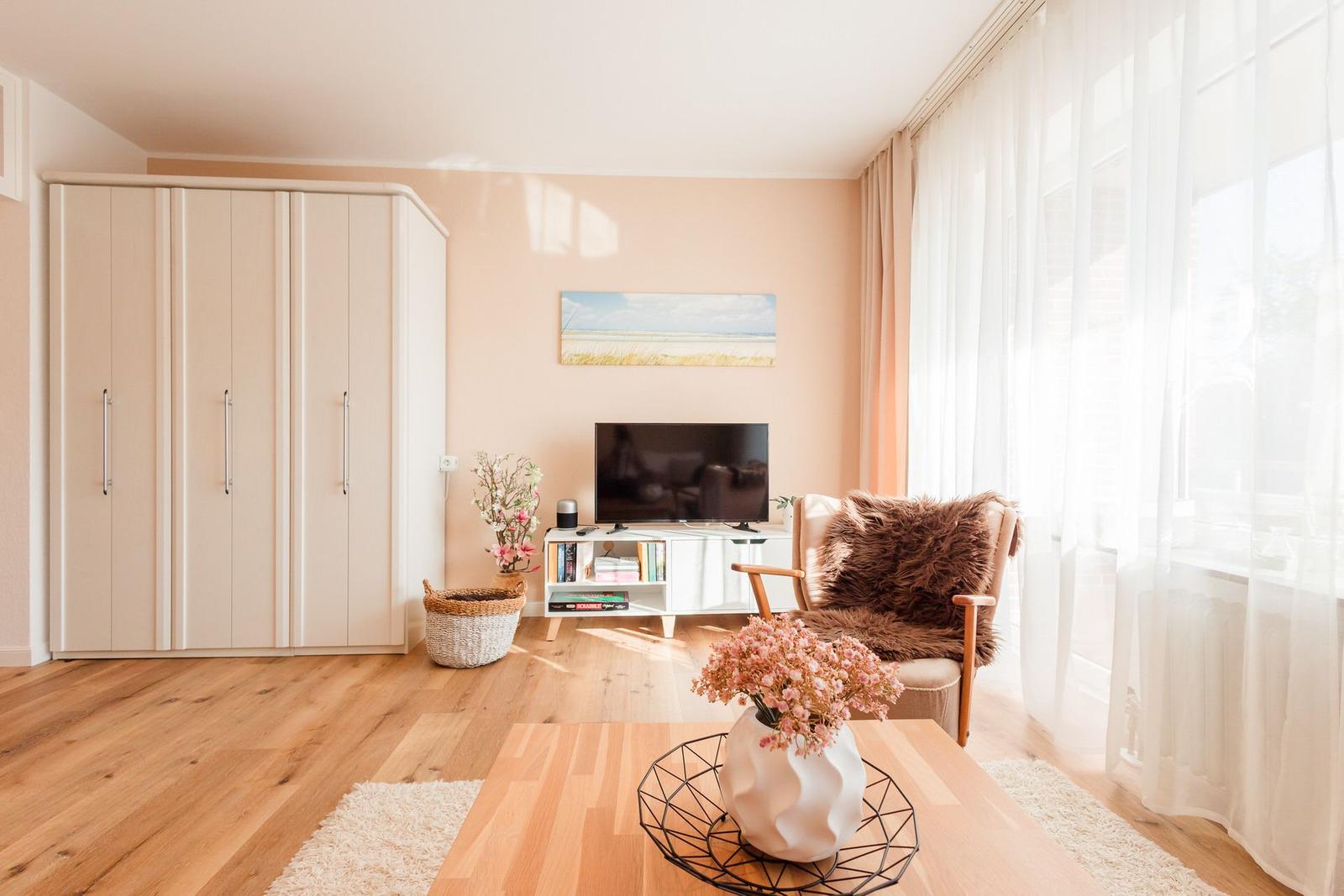 Schöne, helle und gemütlich eingerichtete Ferienwohnung mit PKW-Stellplatz.