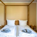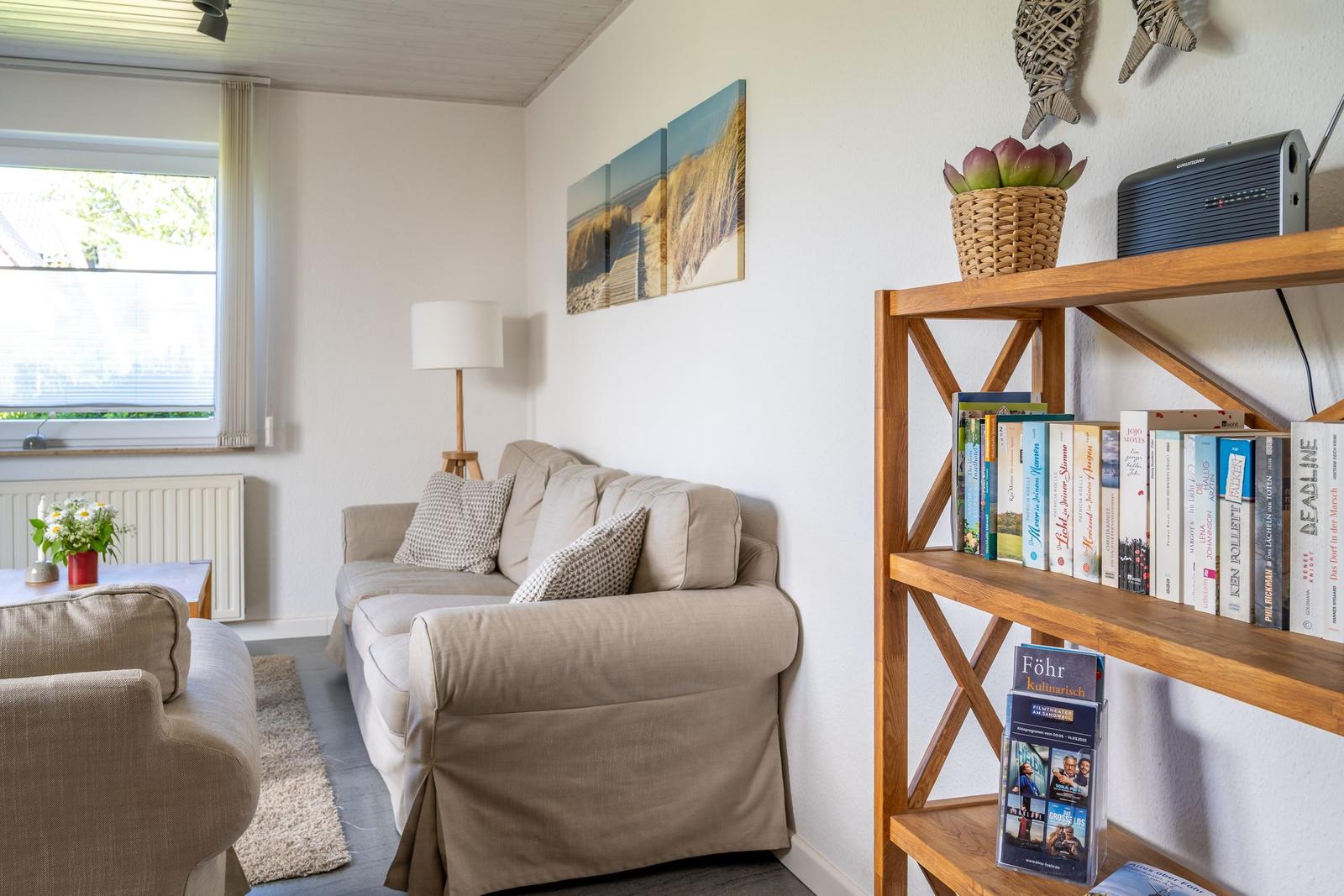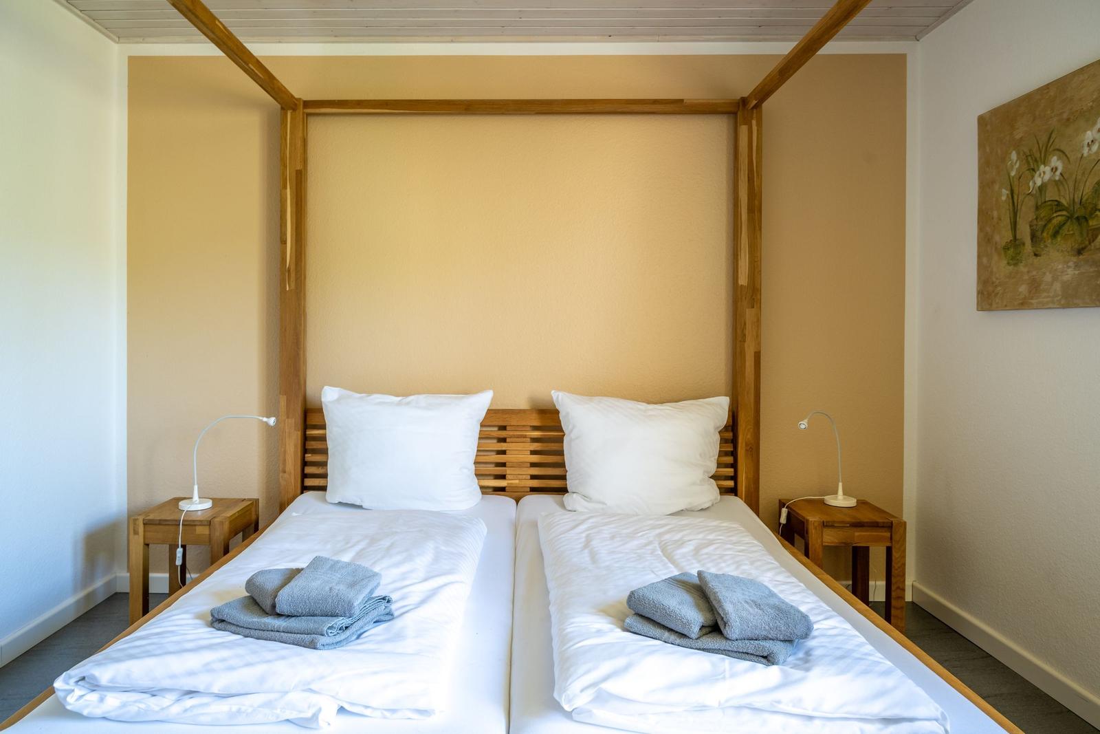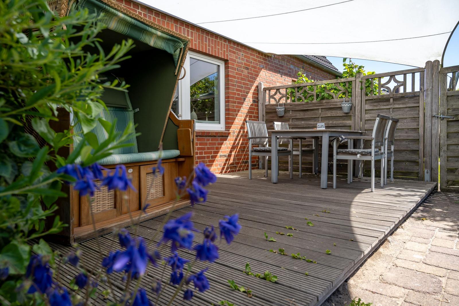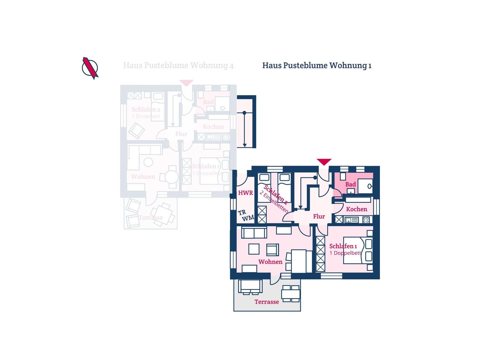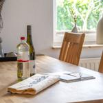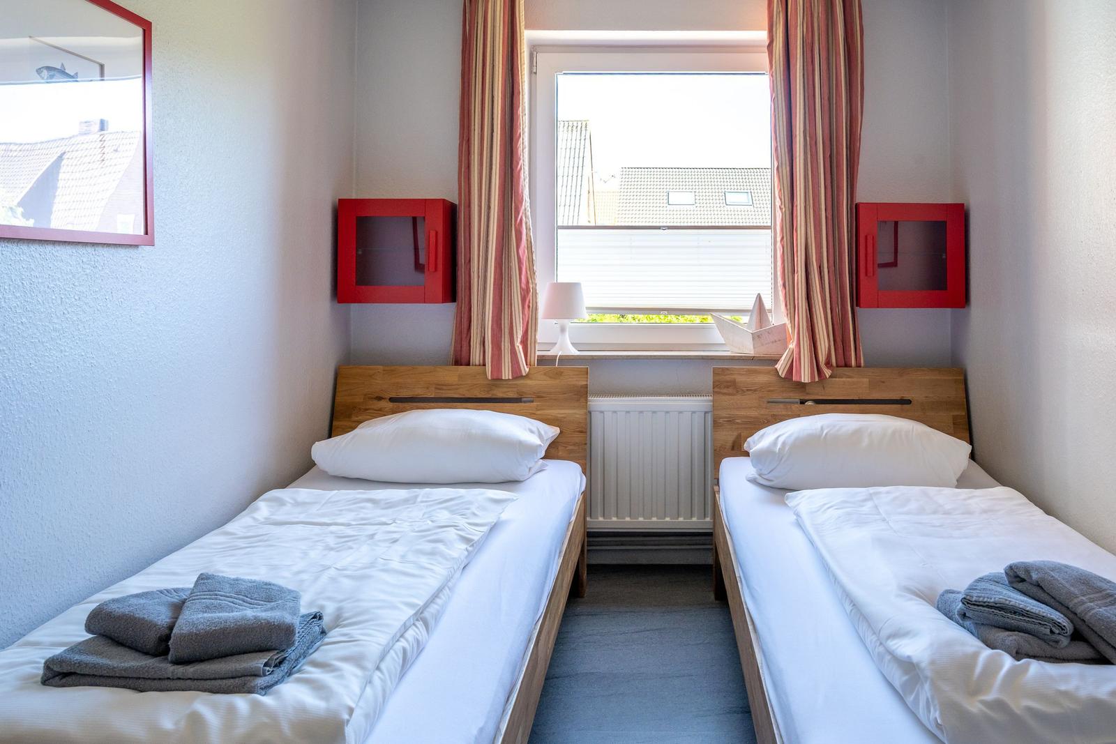 Die Ferienwohnung bietet eine komfortable und allergikergeeignete Unterkunft für bis zu vier Personen. Sie verfügt über zwei Schlafzimmer, eines mit einem Doppelbett und eines mit zwei Einzelbetten. Die separate Küche ist vollständig ausgestattet mit einem Elektro-/Gasherd, Geschirrspüler, Backofen, Kühlschrank, Gefriermöglichkeit, Kaffeemaschine, Toaster und einem Wasserkocher, was die Zubereitung von Mahlzeiten mühelos gestaltet. Zur weiteren Ausstattung gehört ein helles Duschbad mit Fenster, das mit einem Haartrockner und einem Starterset an Pflegeprodukten ausgestattet ist. Im Wohnbereich können Gäste auf einem Sofa entspannen und sich mit der HiFi-Anlage oder dem TV unterhalten. Praktische Extras wie WLAN, Waschmaschine, Wäschetrockner, Bügeleisen und Parkplatz runden das Angebot ab. Auch für die Kleinsten ist gesorgt, ein Kinderhochstuhl steht bereit. Die Wohnung ist durch Fliegengitter und Rauchmelder sicher und komfortabel.