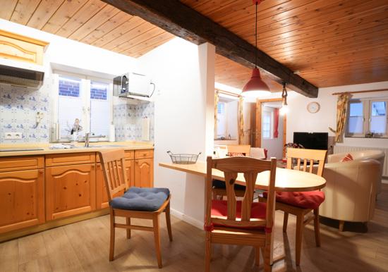 Die Wohnung hat ein Großes Dreibettzimmer im ersten Obergeschoß. Unten befindet sich das Wohnzimmer mit Kabel-TV, DVD und kleiner Musikanlage sowie die Küche ausgestattet mit Mikrowelle, Kaffeemaschine,Wasserkocher und Toaster und der Eßbereich. Das Duschbad inklusive Handtüchern, mit und Föhn, ist frisch renoviert.