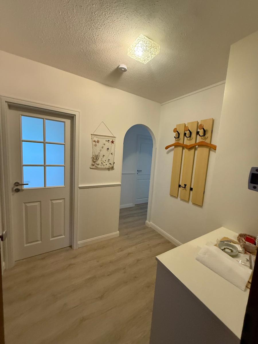 Die Wohnung ist ca. 65 m² groß. Sie besteht aus einem Wohnzimmer mit Essecke, zwei Schlafräumen, separater Küche, Dusche/WC, Diele und Süd- und Ostbalkon. Komplett ausgestattete, moderene Küche mit Geschirrspüler, Mikrowelle, Kühlschrank mit 4-Sterne-Fach und Backofen mit Grill.
